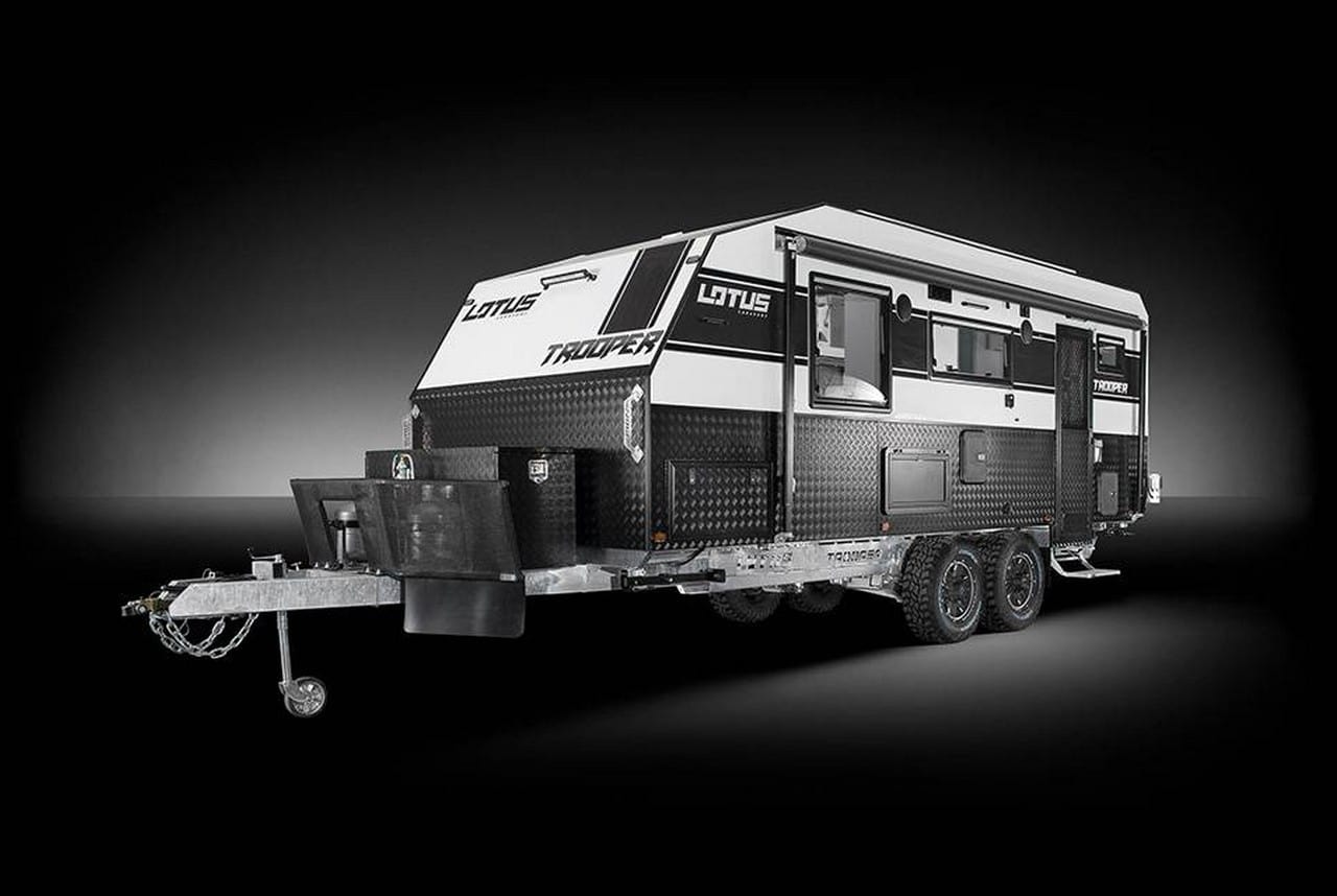 With as much Outback as Australia has to offer, it is little wonder that Melbourne’s Lotus Caravans knows how to take fine living far off the beaten path. Their newest model of luxurious camper trailer is the Trooper, made to be the best, from the leather upholstered dining area, to the German-made composite material used on the paneling that protects the outer shell, to the ceramic sink and toilet.