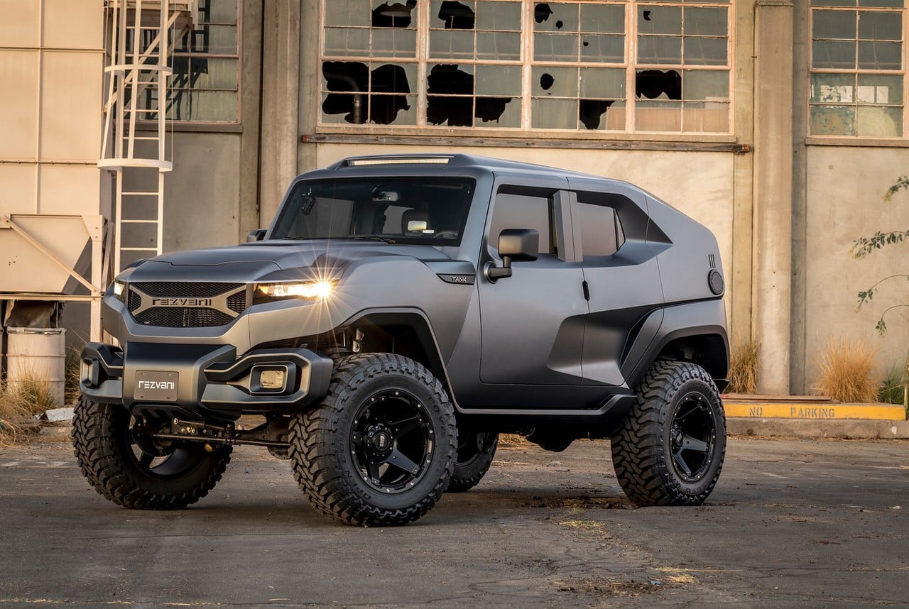 This behemoth has a 6.4 liter Hemi V8 providing 500-hp and 430 lb.ft. of torque. Its muscular no-nonsense body can include such military grade options as bulletproof glass, ballistic armor, FLIR thermal night vision, and Kevlar protection around the floorpan, radiator & fuel tank. It’s no wonder Rezvani considers the Tank to be more of an ‘Extreme Utility Vehicle’ than just an off-road rambler.