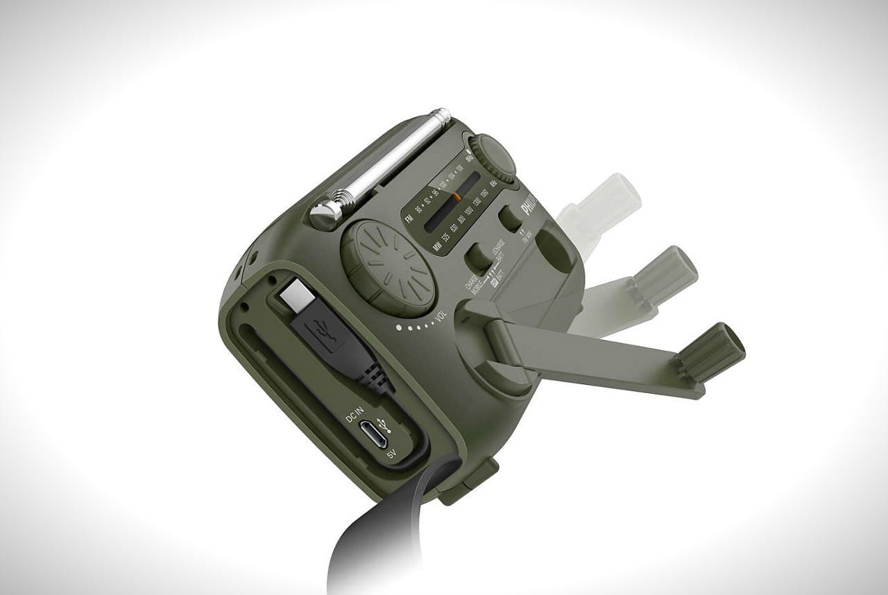 Featuring FM/MW analogue radio with a cross-shaped speaker on the back, a micro USB port for charging your devices, 3-bulb flashlight, and a built-in siren, the gadget uses 3 AAA batteries but also a hand-operated crank providing kinetical power. Measuring just 120 x 47 x 76 mm and weighing in at a mere 0.26 kg, this tiny survival tool is also ideal for outdoor activities, like trekking or camping. It comes in a heroic military green.