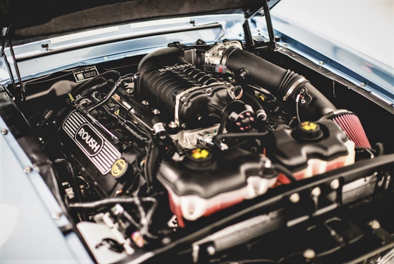 Boasting a classically-styled yet new steel body, the muscle car sports the required bits including the Shelby upper & lower side scoops, a fiberglass hood with scoop and integrated hood latches, plus all the right badges and vinyl side stripes adorning it. Powering this beauty is a Ford/Roush 5.0L “Coyote” V-8 engine, supercharged and intercooled to blast 600-hp and 475 lb-ft of torque.