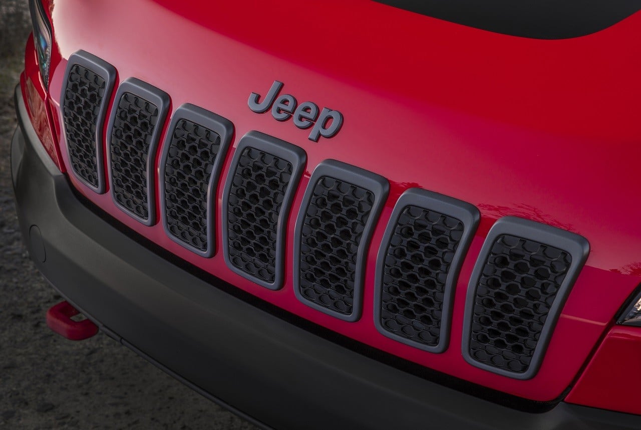 Styling refreshments for the new Cherokee include the addition of redesigned lights both front & rear, new tailgate, chrome tow hooks for the Overland and bright red hooks for the Trailhawk. The latter also gets a reshaped front bumper, skid plates, larger fender flares, a raised ride height, and 17-inch wheels with off-road tires. The interior remains almost unchanged, with the exception of the cargo space which receives three extra inches in width, for a total 27 cubic feet of space.