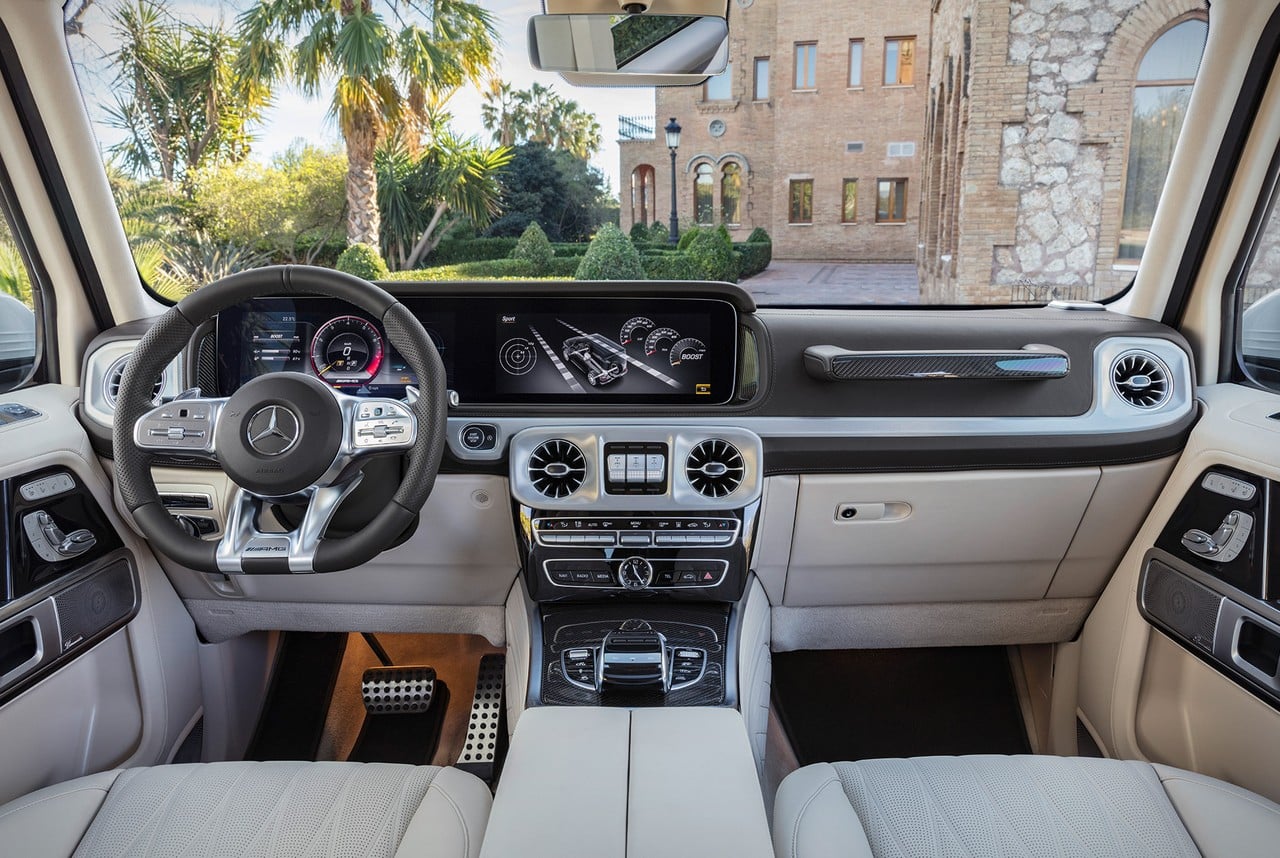 The new Merc comes with a nine-speed transmission and rear-biased all-wheel drive, plus a much-needed cylinder deactivating option for lower fuel consumption. Improved suspension with adaptive adjustable damping offers superior off-road skills. Complete with flared fenders, AMG steering wheel, a new radiator grille & bumper, and obsidian black paint-finished details, the G63 looks as powerful as it performs.