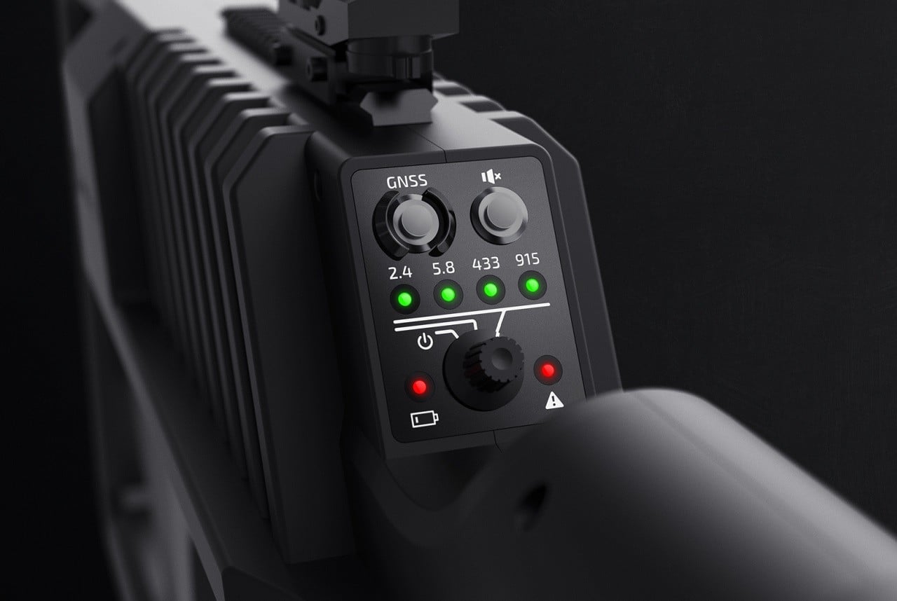 The rifle-like, compact tool can disrupt multiple RF frequency bands simultaneously (433MHz, 915MHz, 2.4GHz & 5.8GHz), taking control over incoming drones and sending them back to the starting point (assisting to track the operator). With an operating time of 30 min+ and a range of up to 1 km (0.6 mi), the new DroneGun can also break the drone’s GPS signal for a vertical controlled landing on the spot, and can immediately cease video transmission back to the operator.