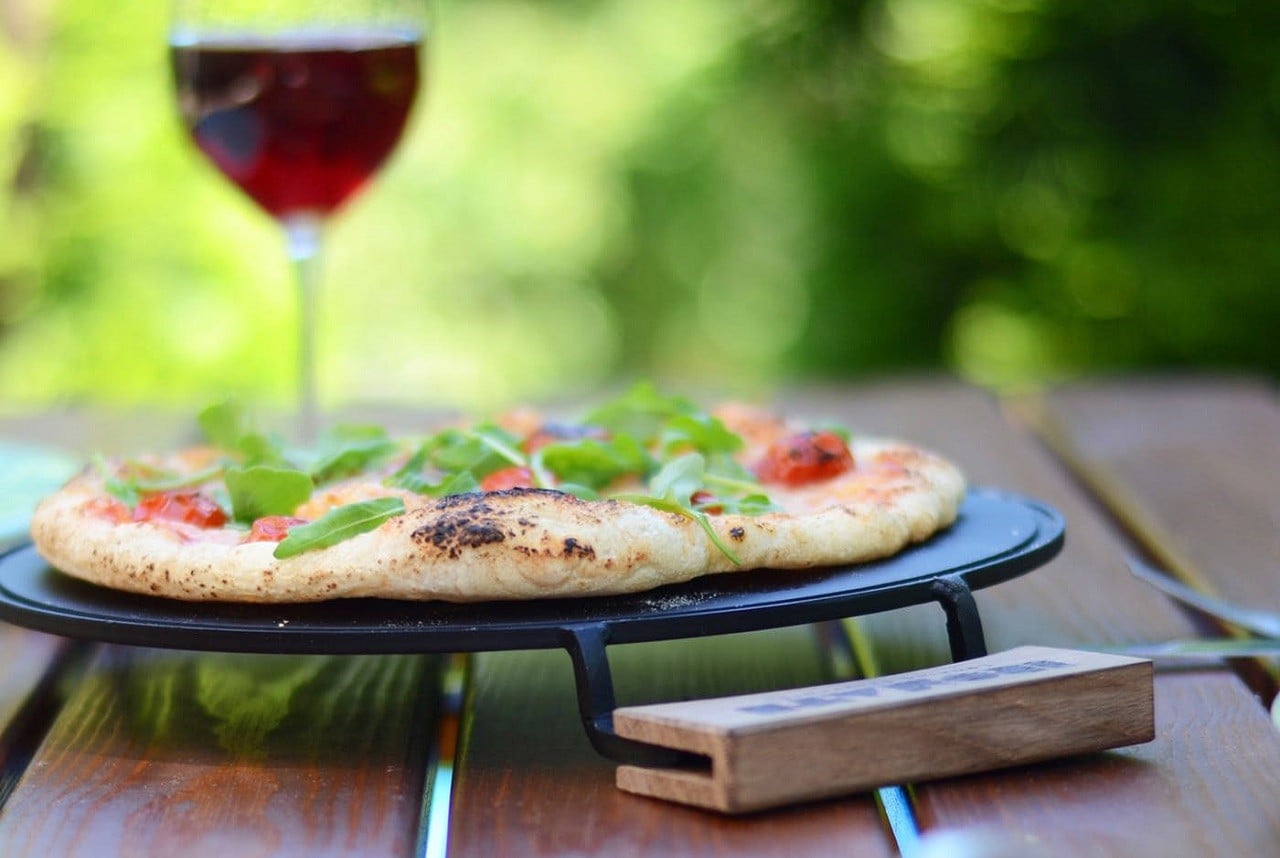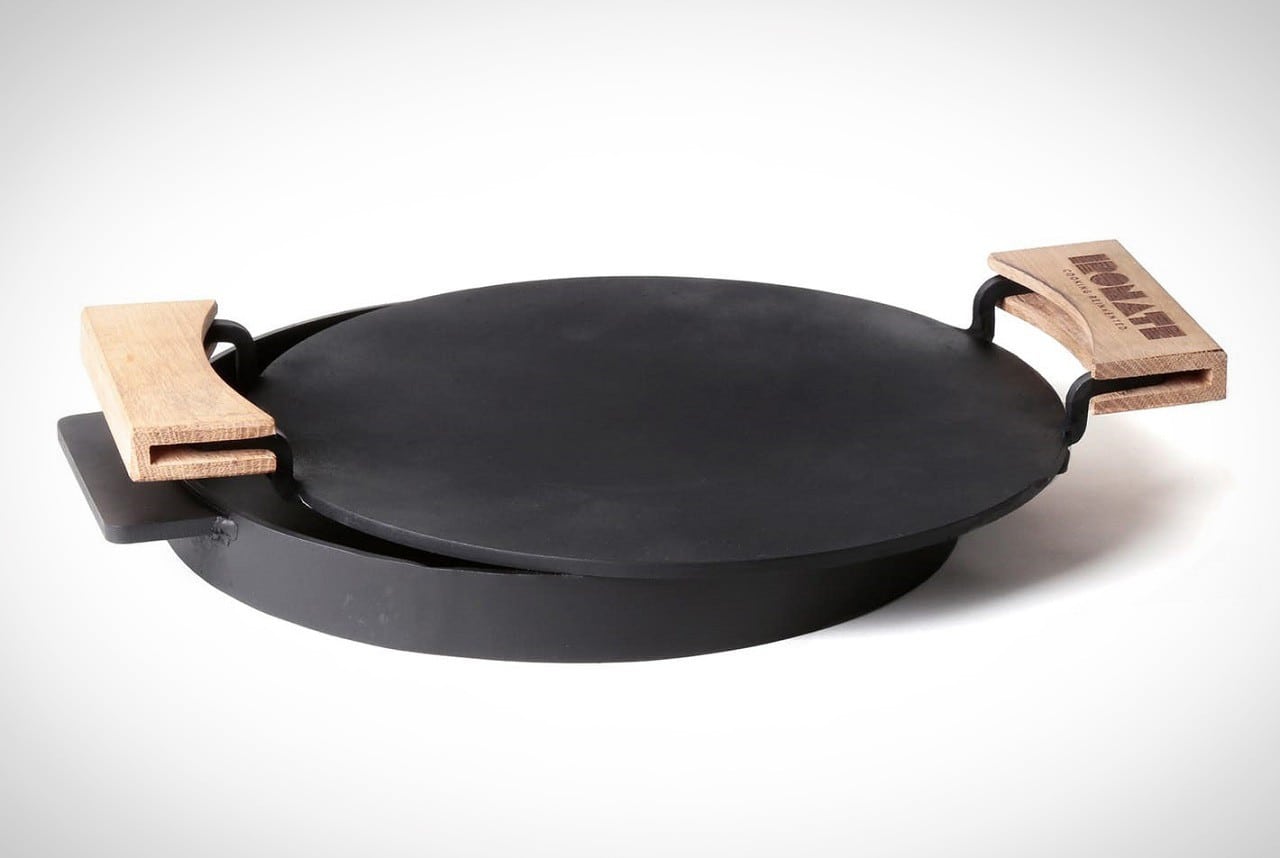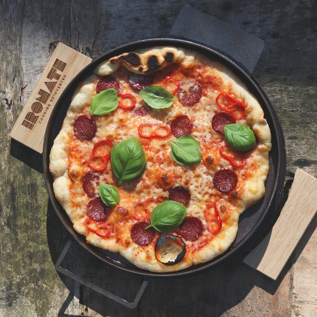 Thanks to its fast-heating properties, the cooker can evenly bake a crispy pizza in just 3 minutes. It can also sear a steak, bake a piece of fish, or stir-fry veggies impeccably, and it works on any type of stovetop, grill or campfire. The versatile Ironate pan measures 10” in diameter, weighs in at 10 lb (4.5 kg), and comes with two wooden handles, and a user manual with pizza recipes.
