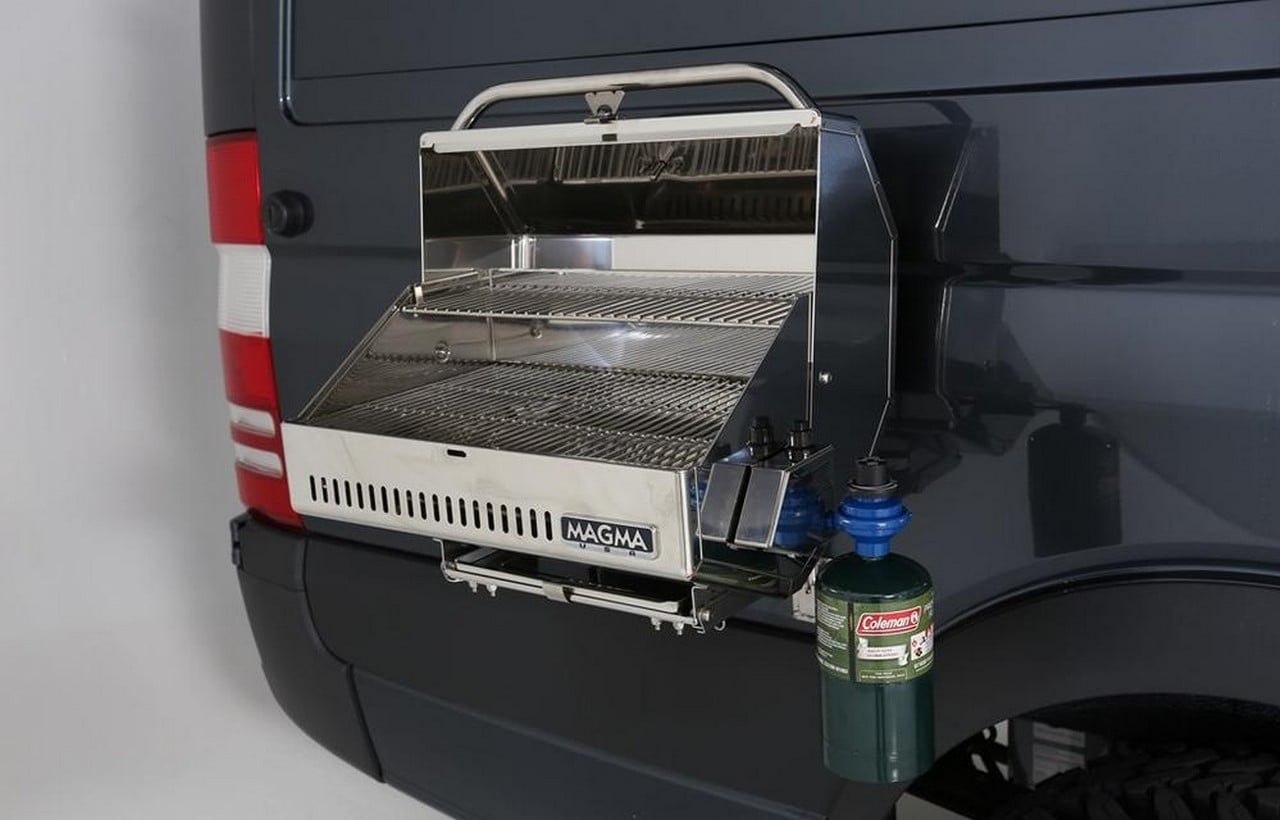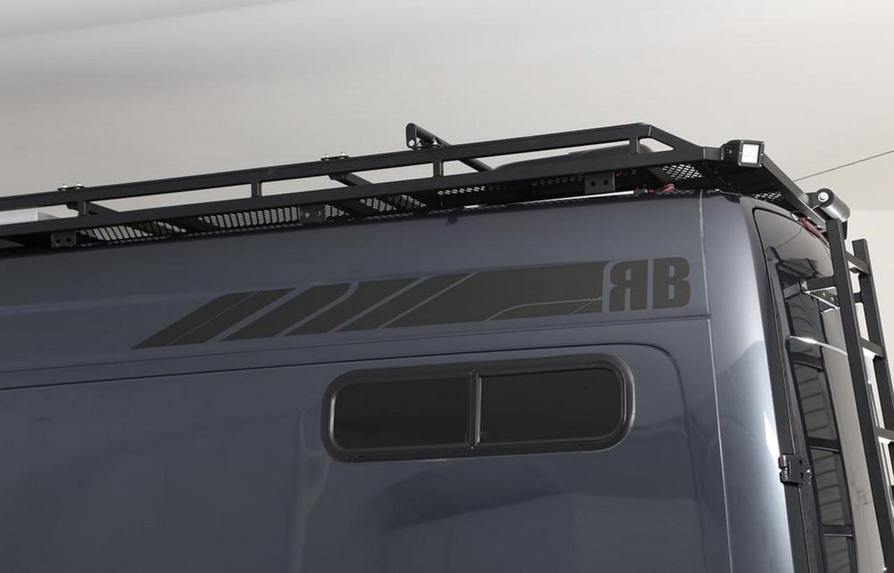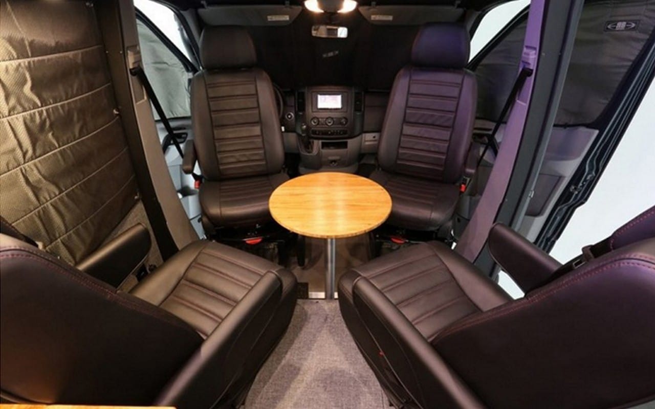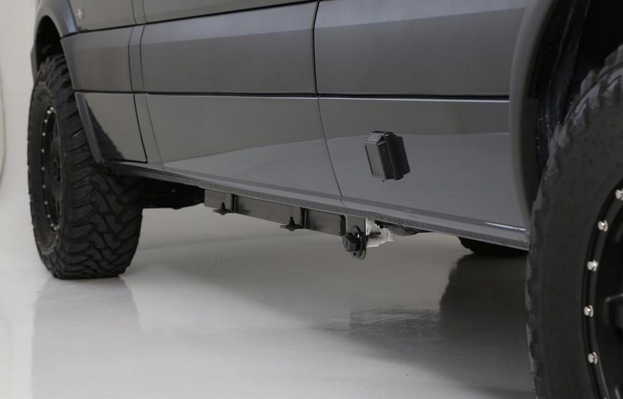 Converted by American manufacturer & trailer customizer RB Components, this self-sufficient mobile home has roof-mounted solar panes, a 3000-watt power system, electric awning, a BBQ exterior mount for cooking, stainless steel enclosed shower with hot water, 69-gallon fresh water system, and bamboo tables inside. To ensure the Sawtooth van can easily ride over bumpy terrain, it has also been fitted with a Loadlifter 5000 Ultimate air suspension kit and 17” Toyo tires.