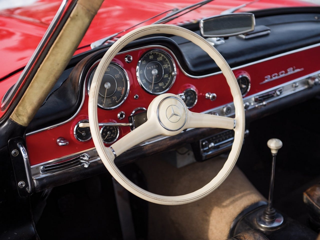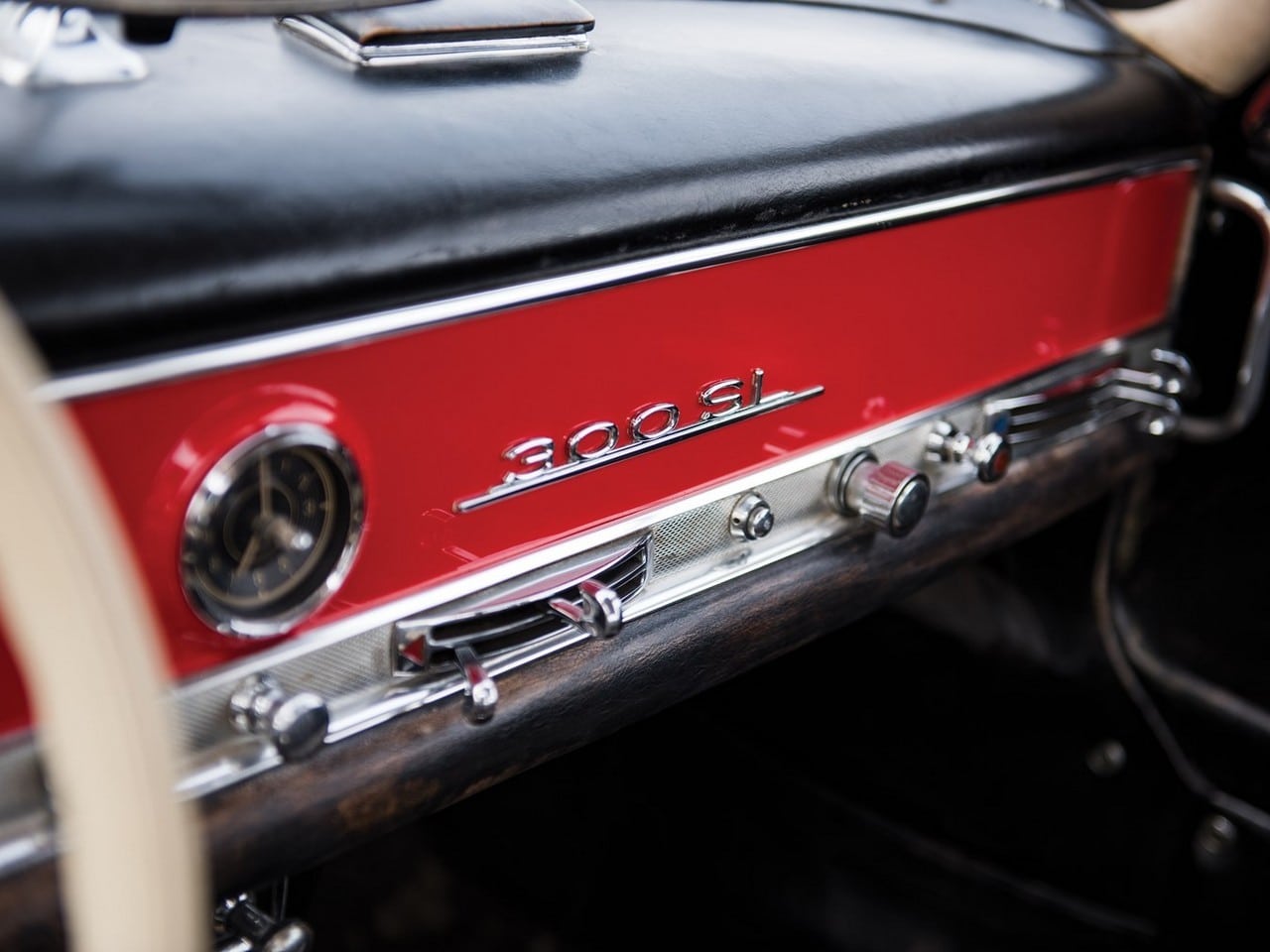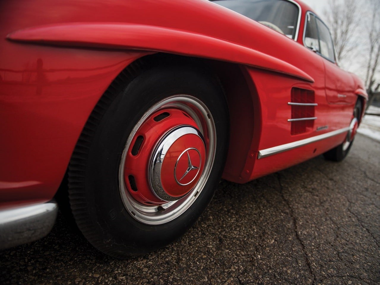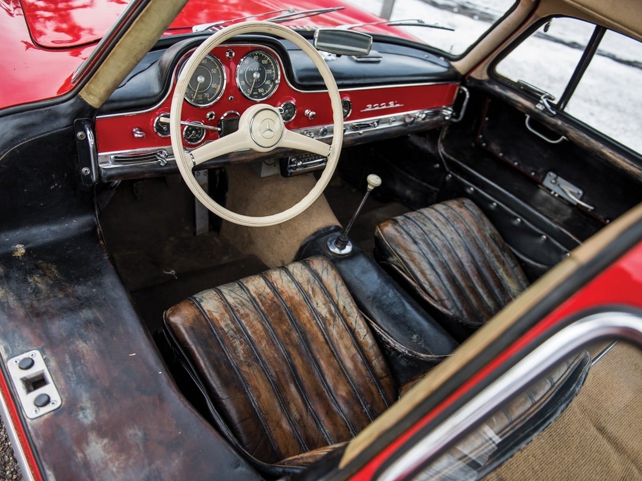 Having never been restored or modified, the 1957 Mercedes-Benz 300 SL Gullwing you see here is even rarer. And it can be yours for 1 million-1.3 million at RM Sotheby’s auction in Fort Lauderdale on April 7, 2018. The highly-collectible sports car features the original Fire Engine Red finish (redone over the years), the original Cream upholstery (quickly surface-dyed black decades ago, but remains intact, with no tears or scratches), and even its original Michelin spare tire and two of the three original belly pans.