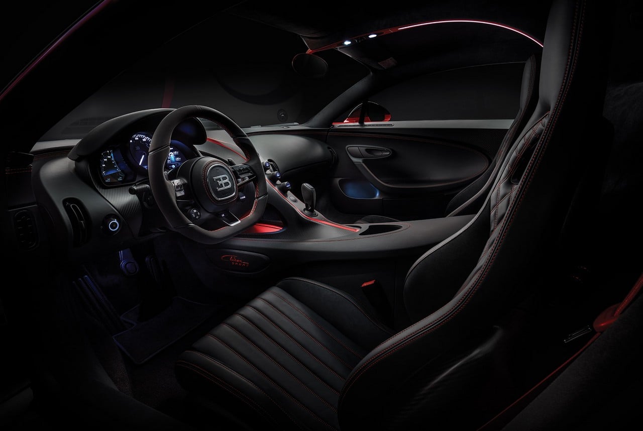 While the hair-raising power (1,500-hp W16 engine) and speed figures remain the same we saw in the Chiron model, the Sport version has higher-performing features while dropping 18 kilos of weight. This is achieved thanks to a number of lightweight elements including an industry-first carbon fiber windscreen wiper, a lighter rear window glass, and a new set of wheels.