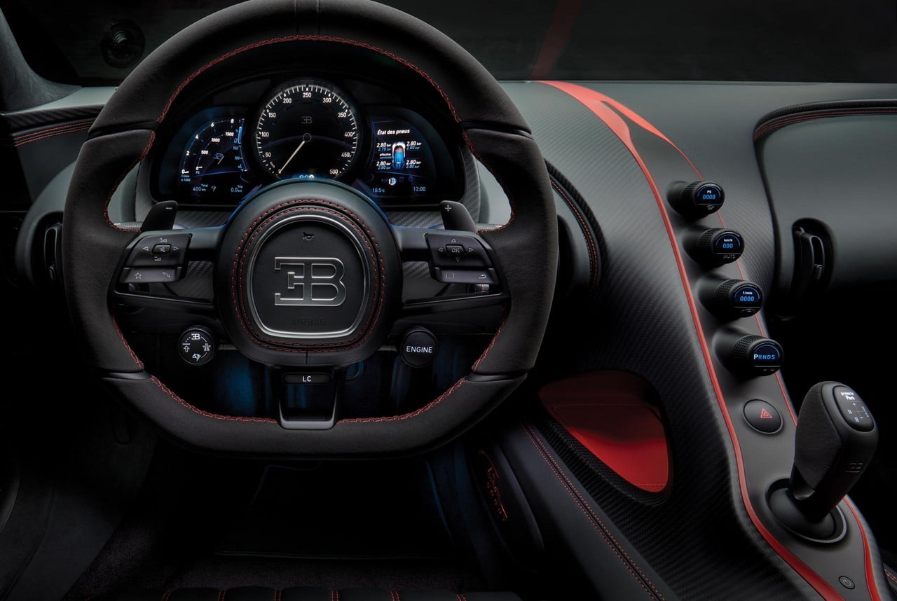 A firmer chassis along with a new “dynamic torque vectoring function” and a sport-focused suspension setup provides even sharper handling, while a new four-pipe exhaust deflector and optional carbon fiber exterior add refined racing touches. As expected, Chiron Sport’s cabin is clad in luxurious materials such as Alcantara, leather, and carbon.