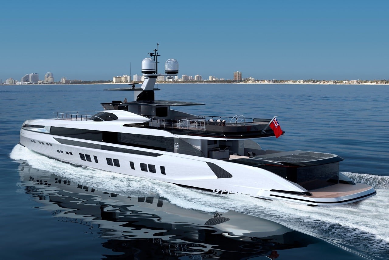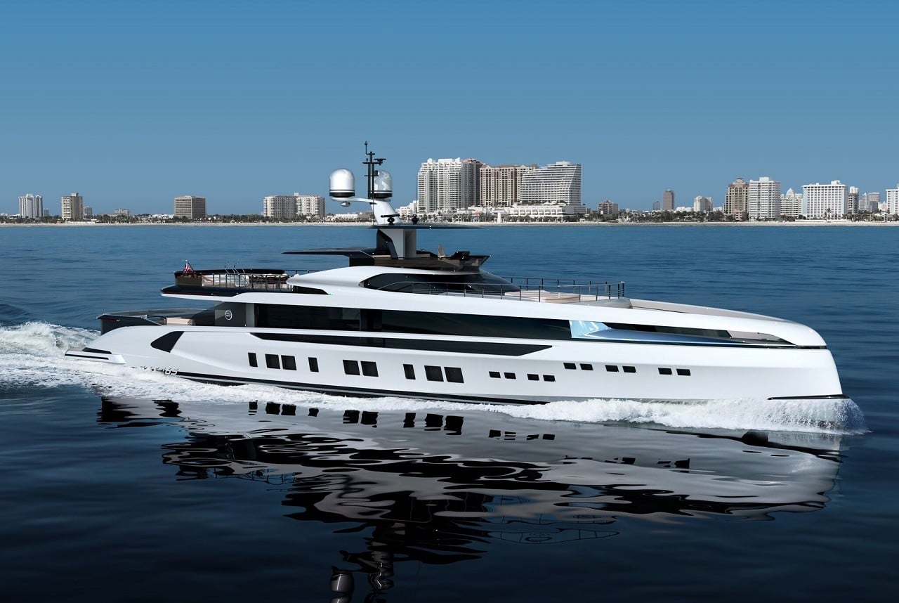 The all-new Dynamiq GTT 165 is the world’s first foiling superyacht. This 164-foot sporty watercraft is equipped with two underwater foils that lift the hull up, allowing for decreased drag and higher speeds, making this the only yacht in its category capable of crossing the Atlantic at up to 25 knots.