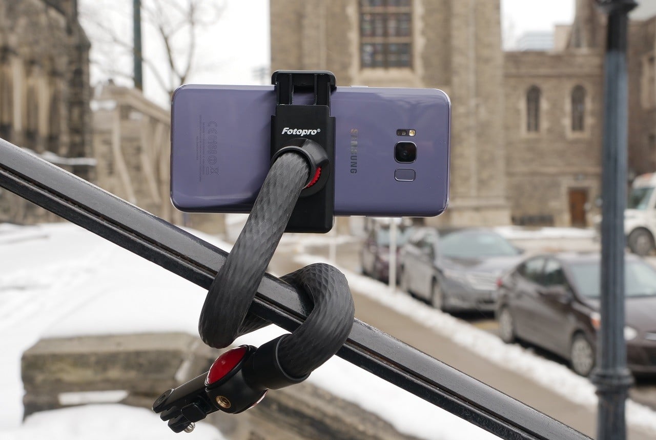 The Fotopro Mogo is a photography monopod made specifically for mobile devices. It can attach to different cameras, tablets & mobiles, or GoPros, and it features a patented flexible arm that can be wrapped, bent, tied, coiled or stood around or on anything, allowing photographers to take photos and videos from various angles.