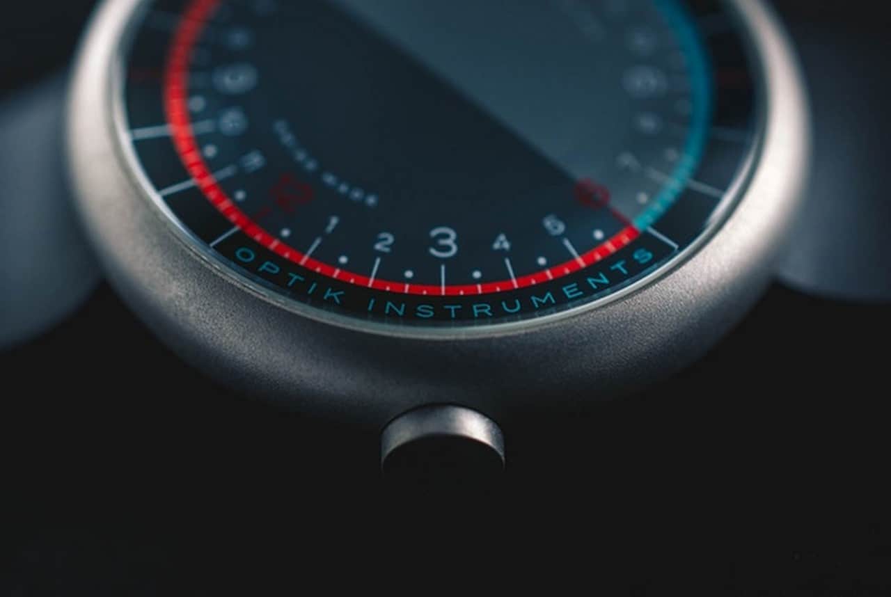 Created by OPTIK INSTRUMENTS, a young British design house “driven by a slow-living culture,” the striking watch features a smooth, rounded stainless steel case with a domed sapphire crystal. The integrated crown adds to the seamless look, while a battery-powered movement is suspended in the case with a unique engagement frame, allowing the disc to rotate freely and helping with shock resistance.