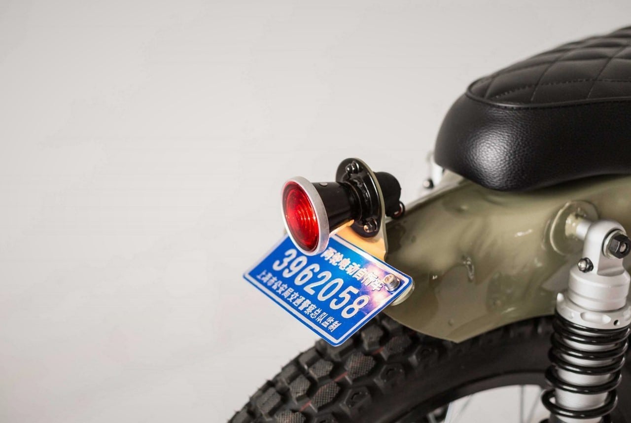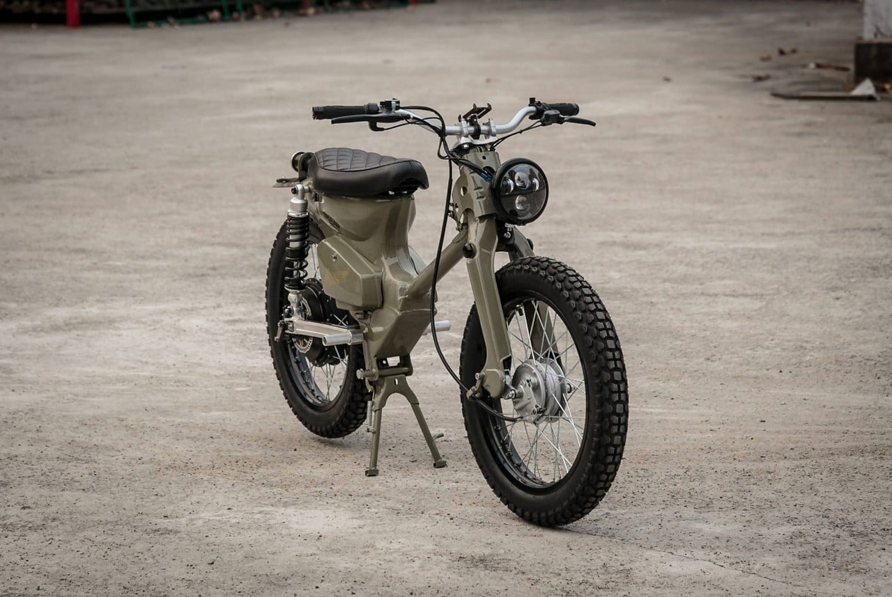 Based on the iconic Honda Super Cub chassis, the bike has the same stamped steel construction of the original. It also features a new aluminum swingarm that allows the for the electric motor to fit in the rear hub, adjustable shocks for a comfy ride, a retro LED headlight, and LED taillight, while all electrics are tucked away inside the frame for a clean look.