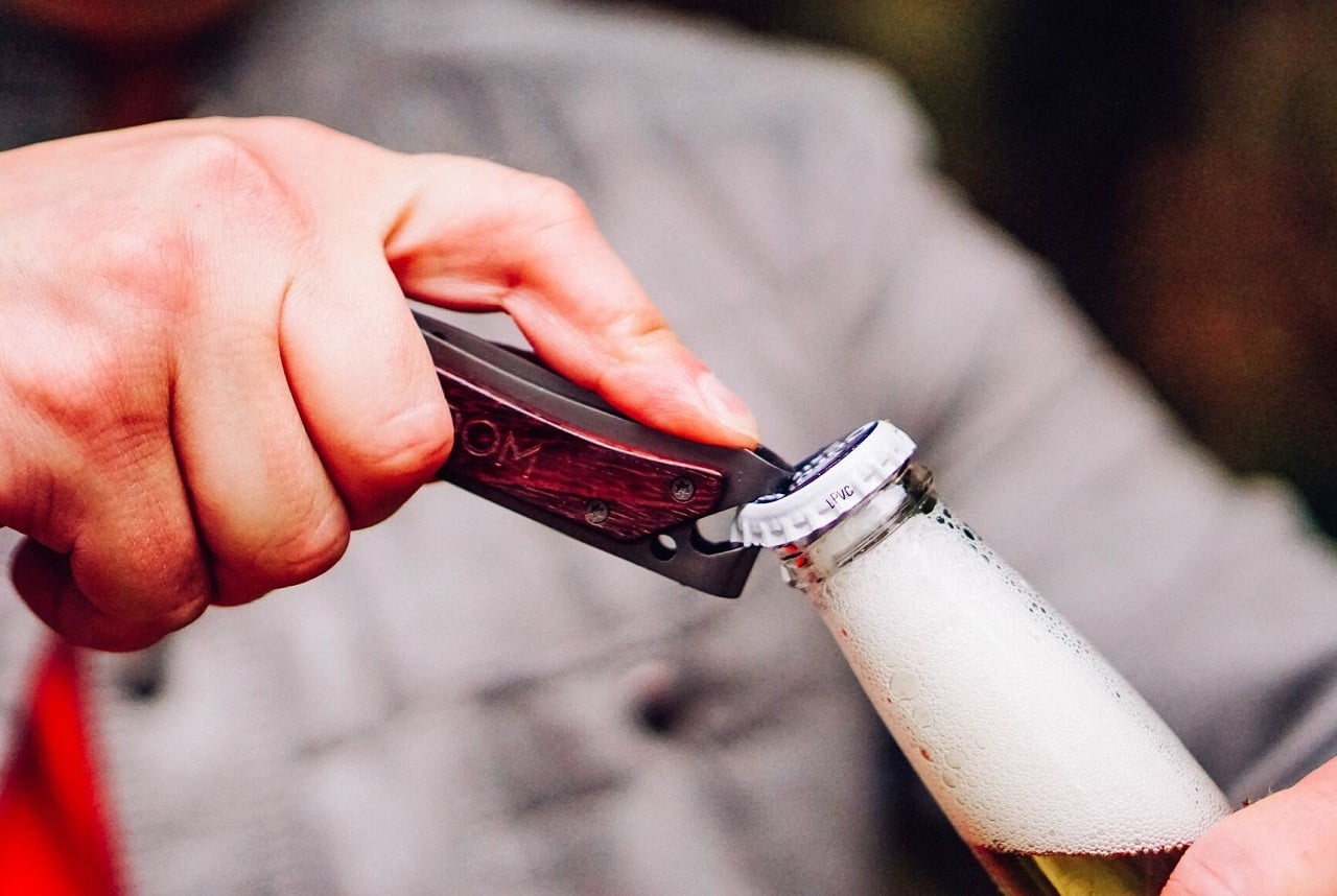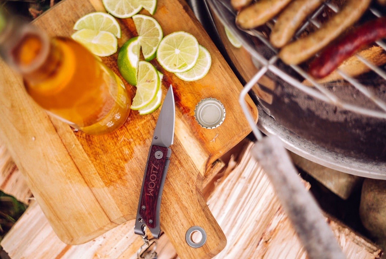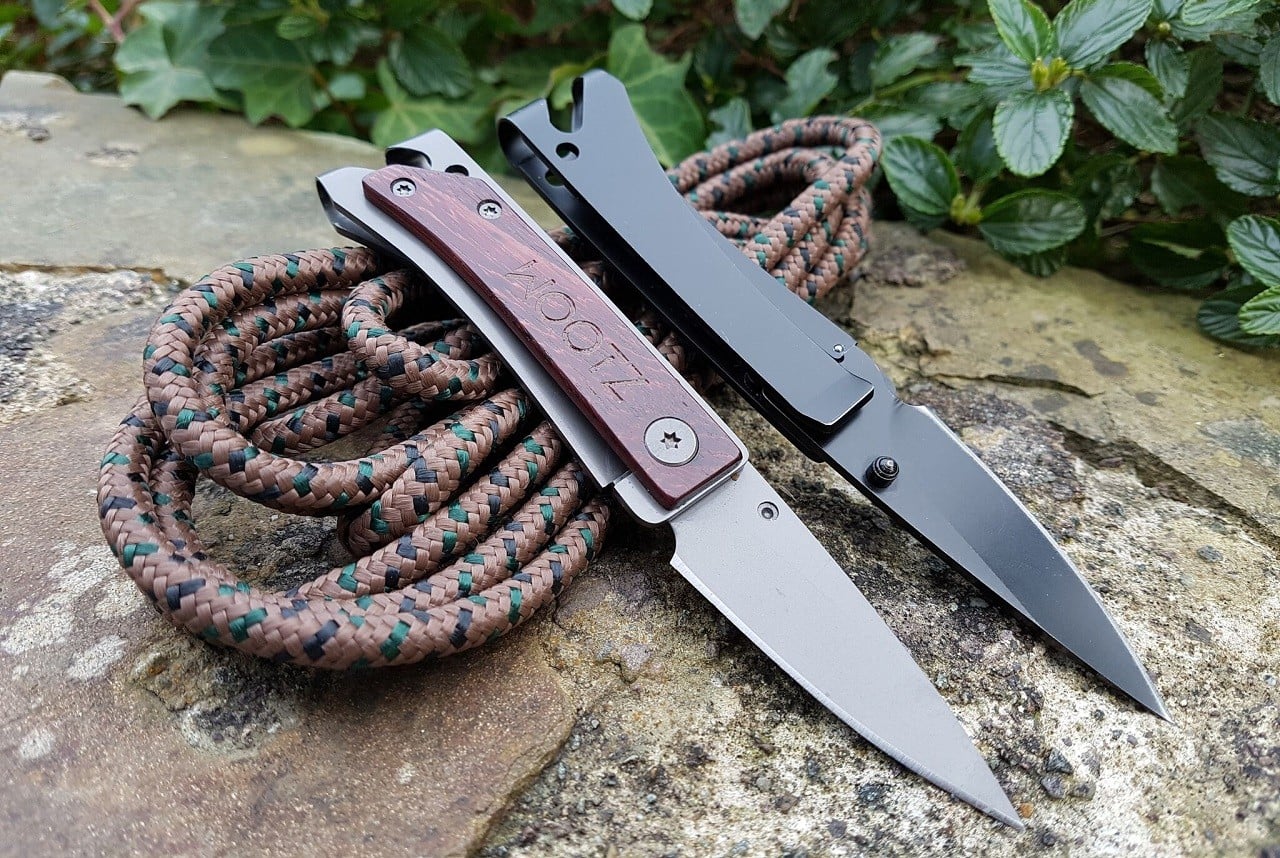 Constructed of tough high-carbon 440C stainless steel, the tool includes a razor-sharp & rust-proof folding blade, bottle opener, a hole for split rings, and a side clip that can be attached to a belt or pocket, or used as a money clip. The light tool can be smoothly operated with one hand, and handles the most common camp functions, including whittling wood, cutting, fastening screws, and of course, opening beers. Available in 6 styles, with micarta, carbon fiber or hardwood handles, in gray, black or titanium coating.