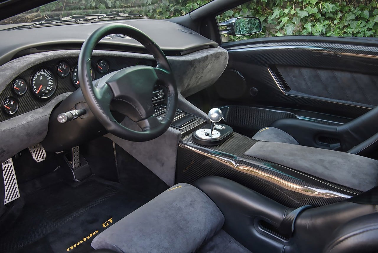 Known as the wildest iteration of the Diablo, the completely race-oriented GT model features a modified aggressive carbon fiber bodywork and an enlarged V12 engine sending 575-hp (465 lb-ft of torque) to the rear wheels, matched with a 5-speed transmission.