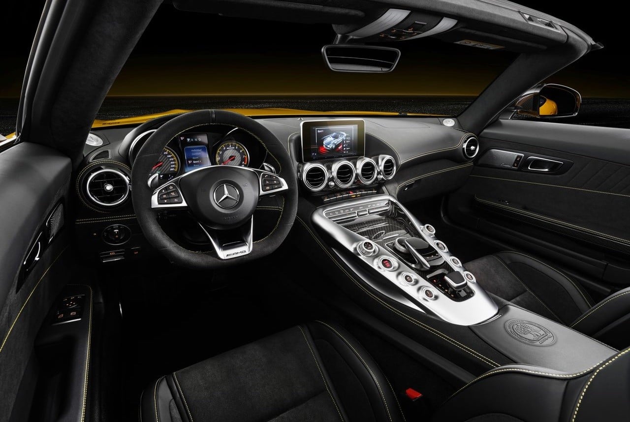 The 2019 Mercedes AMG GT S Roadster is the 12th and latest member of the AMG GT series. This extremely yellow open-top 2-seater is powered by a handcrafted, 4.0L V8 Biturbo engine delivering 515 hp, making for a 0-60 time in 3.7 seconds and a top speed of 192 mph.