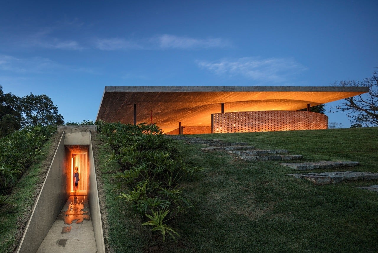 “A radical exercise in horizontality,” the Planar House is a cleverly-built dwelling with a massive green roof mimicking the surrounding lawn. The living roof not also provides energy efficiency (solar panels and insulation), it also doubles as an exquisite lounge area with arresting views.