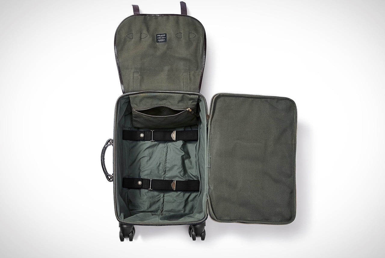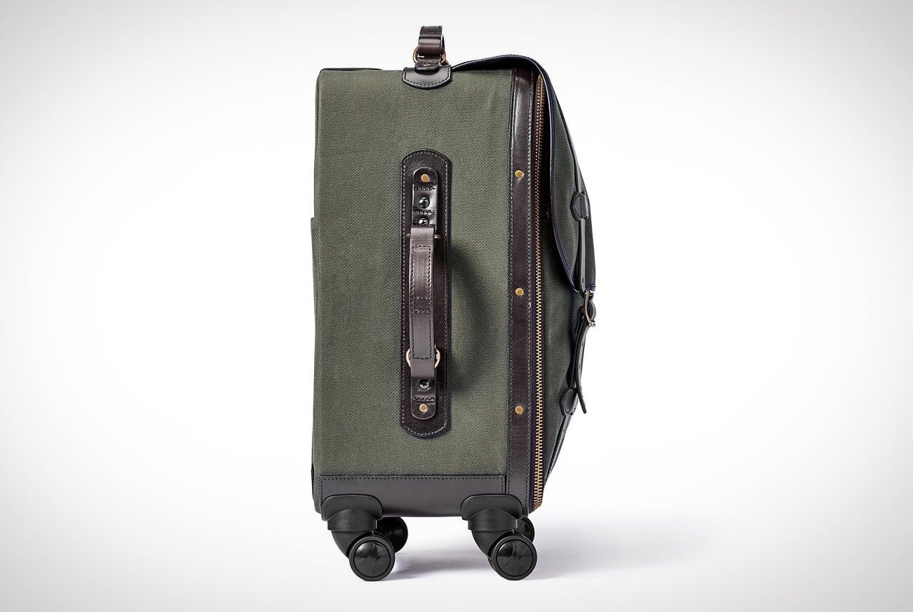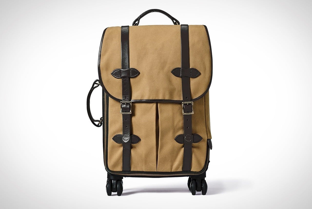 Made of 100% cotton rugged twill with 6-oz. cotton lining and bridle leather, Filson’s Twill Rolling Carry-on Bag is a refreshing alternative to the boring plastic and nylon suitcases you see everywhere.