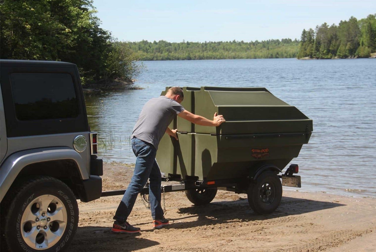Both weather-and-bear-resistant, the Tetra-POD has a removable locking lid with gas springs and a capacity of 27 cubic feet. Available in an Off-Road model with a 1500lb walking beam-style axle, and the On-Road Tetra-POD with a 2200lb dexter torsion axle. Details in the video.