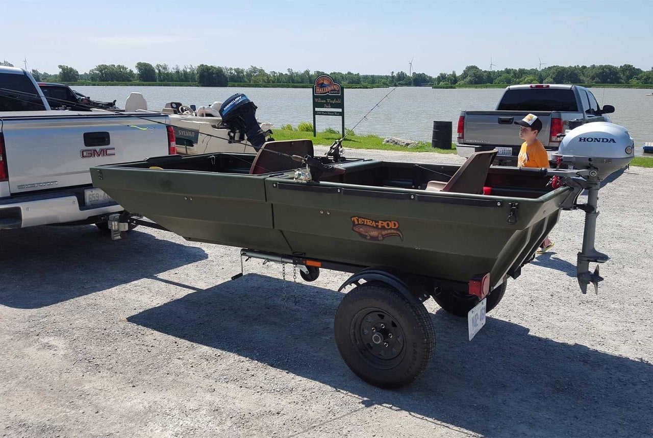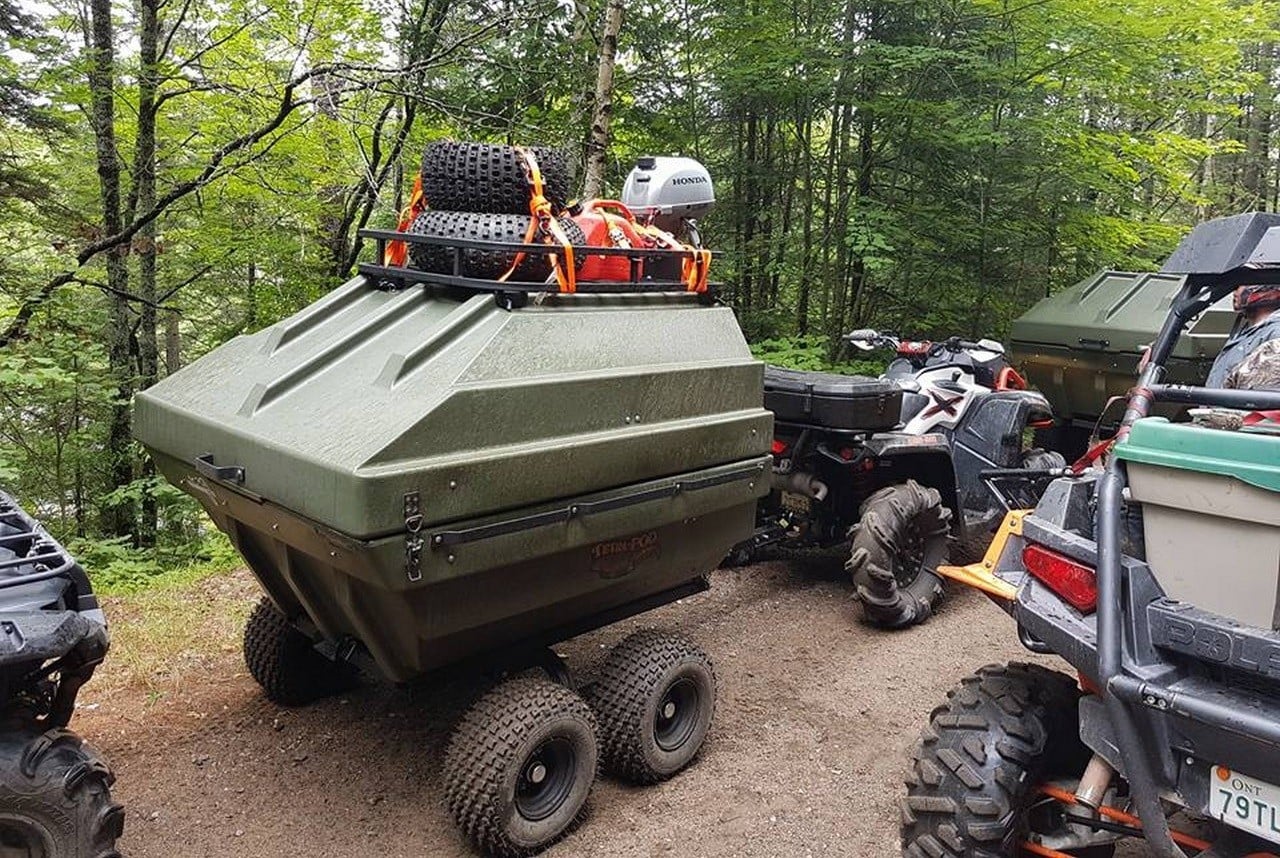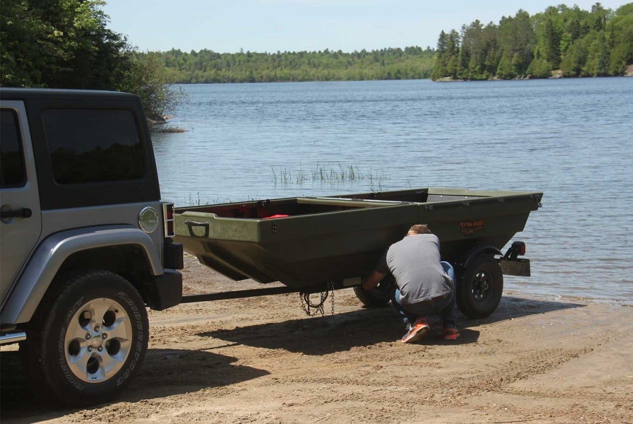 The only enclosed trailer in North America that flips into a boat, the Tetra-POD lets you safely (and cleanly) haul various kinds of cargo through wet, muddy & uneven terrain. Once you’ve reached your destination, the trailer can be transformed into an 11-foot Jon Boat in a likety split.