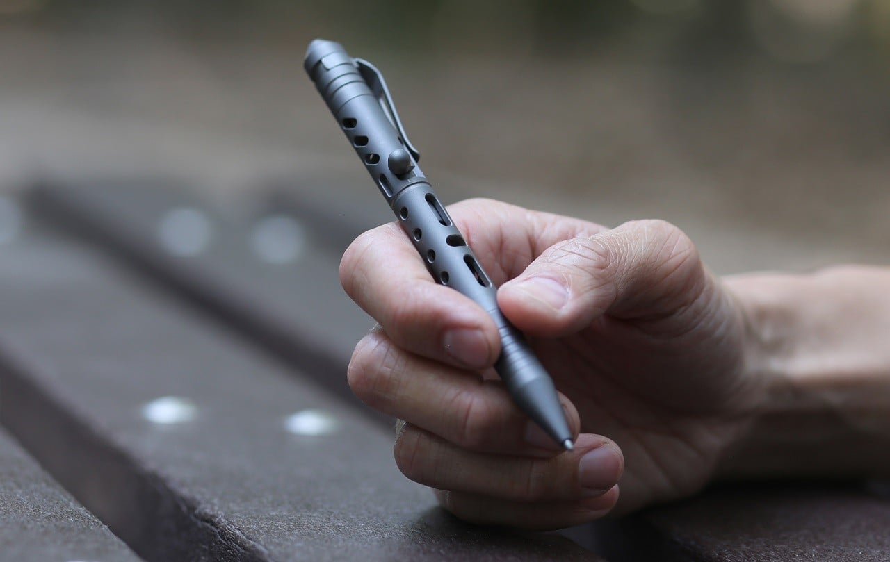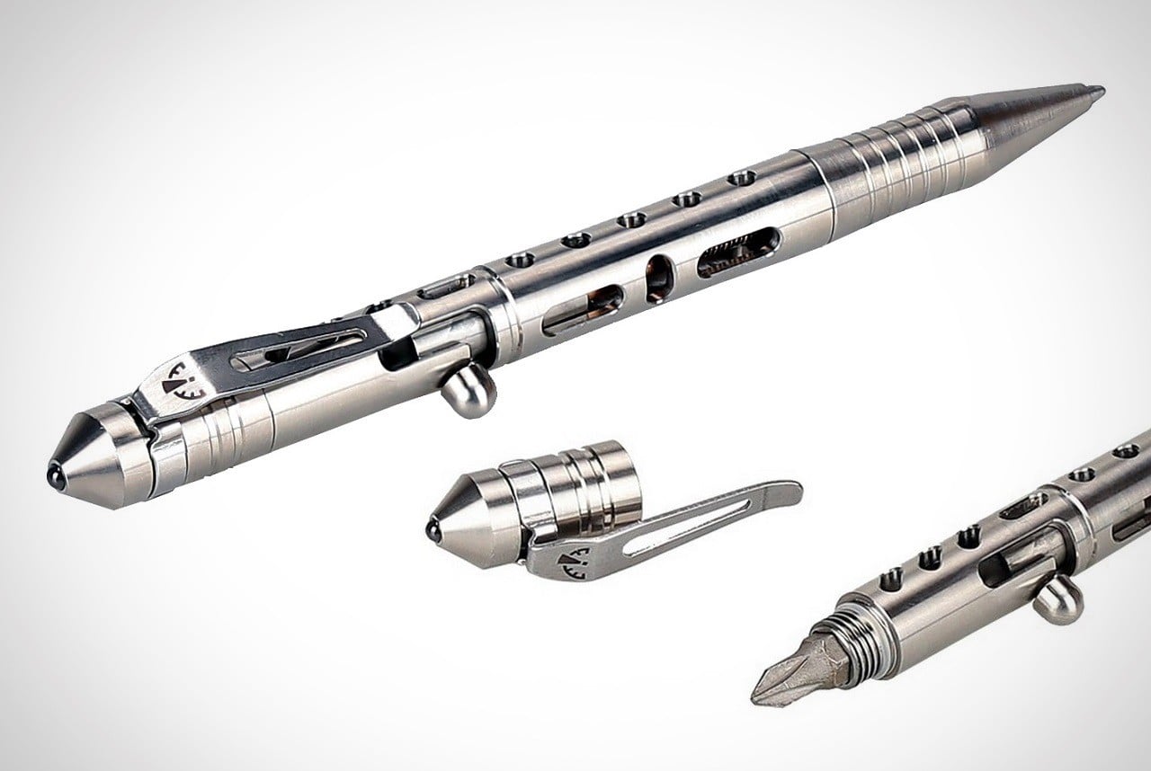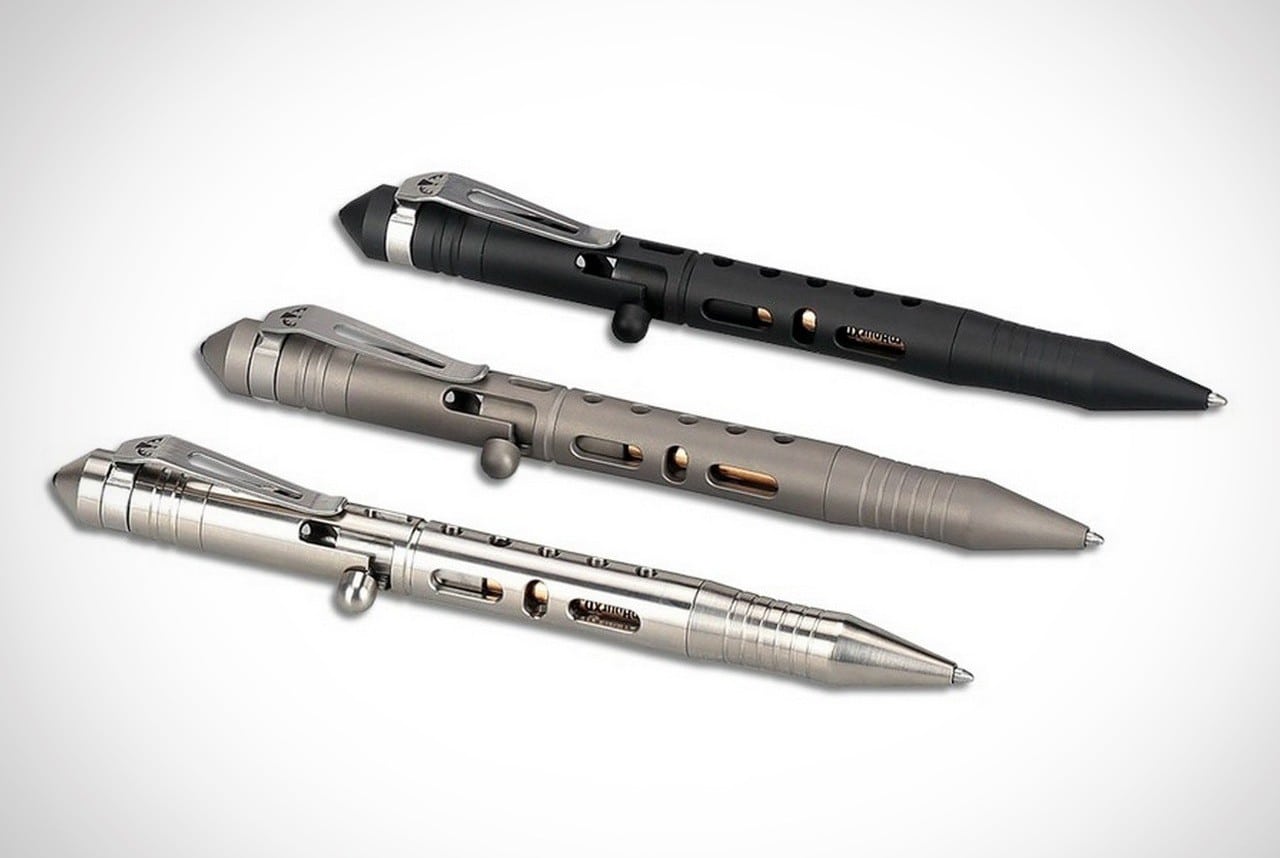 Arriving in durable titanium & aluminum finishes, the pen features a bolt action mechanism that securely locks it in position while also providing fidgeters out there with a fun and simple tactile enjoyment. A pocket-safe ceramic ball bearing tip lets you break glass in case you ever need to (or defend yourself in close combat) and a removable pocket clip makes for easy fastening.