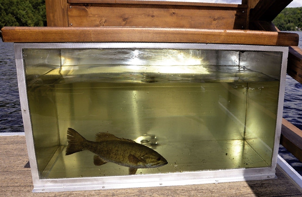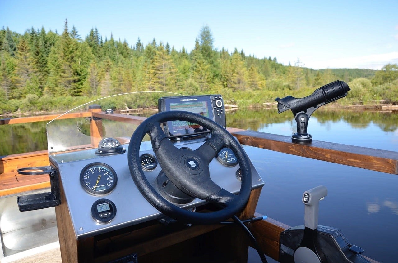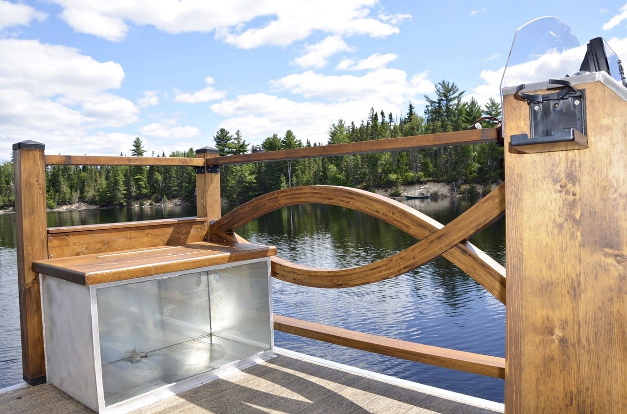 The deck area features three swivel seats, sonar system, dashboard with instrument panel, and even a fish tank that lets you store the day’s catch before you throw it on the barbeque.