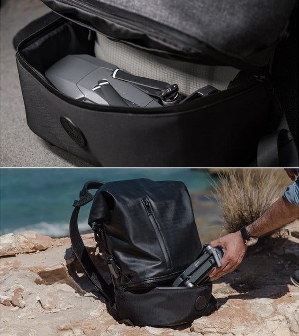 This versatile and stylish bag has a dedicated compartment for a 17” laptop. It has a padded storage at the bottom to hold a camera or drone gear. Meanwhile, the rear compartment holds chargers, cables, and other small items.