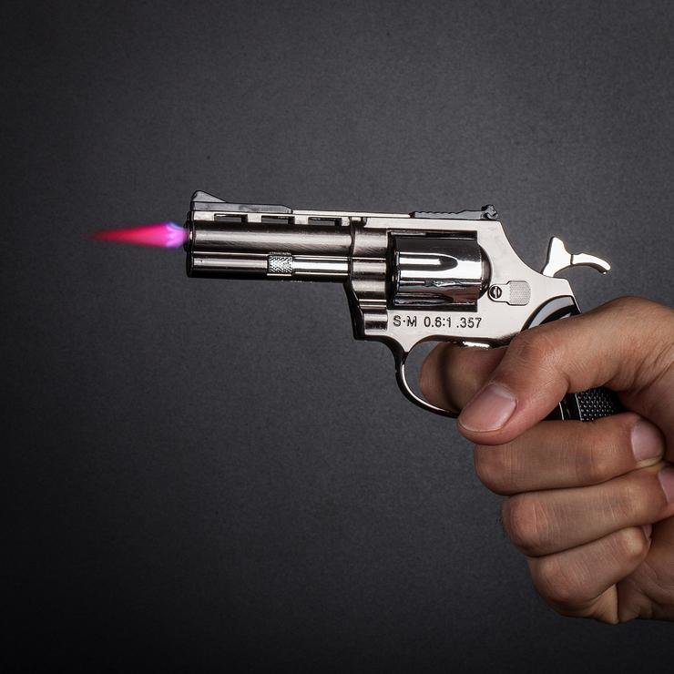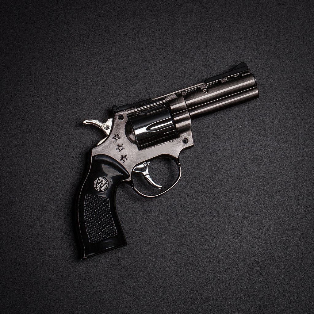 The lighter is a die-cast replica of a revolver pistol which is made from Kirsite. It is refillable and uses standard butane gas to operate. There are parts that are molded from plastic, but the overall appearance is impeccable. In fact, we recommend that you exercise caution during use due to its likeness, which can be mistaken for a real firearm in certain situations.