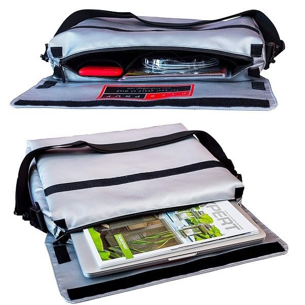 The FirePRUF Fireproof Safe Bag looks like an ordinary messenger bag instead of a reinforced safe so it doesn’t give away its contents. It can be transported anywhere using its top carry handle or removable shoulder straps without attracting unwanted attention.