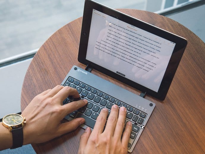 A virtual keyboard just wouldn’t suffice during important situations that call for a physical one: like taking notes at a conference or in class, or if you make a living out of writing. You need a reliable and portable keyboard that you can whip out anytime and anywhere, just like the Gotek Wireless Foldable Keyboard.