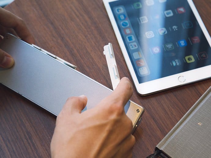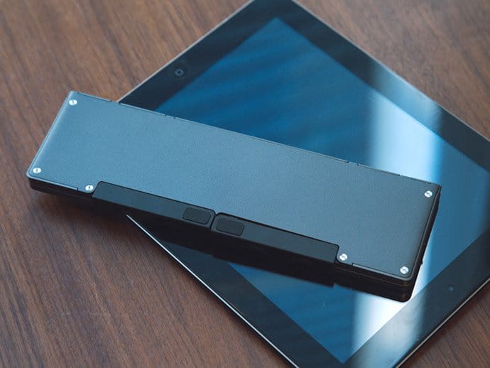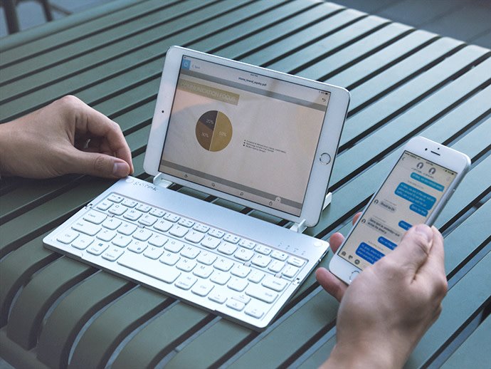 This device comes with powerful magnets on both sides to secure the fold and has a built-in flexible stand that can support any gadgets including the iPhone and iPad and Android and Windows-based tablets. The stand also functions as a lock that holds the folded keyboard.