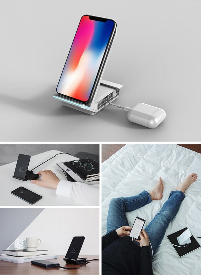 This device powers up your mobile devices in 35 minutes with its two charging coils and Quick Charge 3.0 system. The wireless dock has an ergonomic angle to provide you with convenient screen viewing while your device is charging.