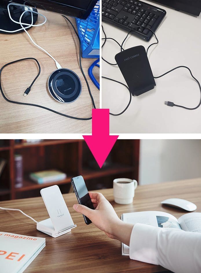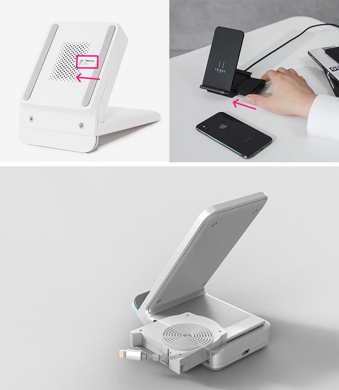 Things Hybrid Charger offers you the convenience of quick wired and wireless charging in one nifty device that features a retractable cable underneath its frame so you can rid your desk of those cumbersome charging cables.