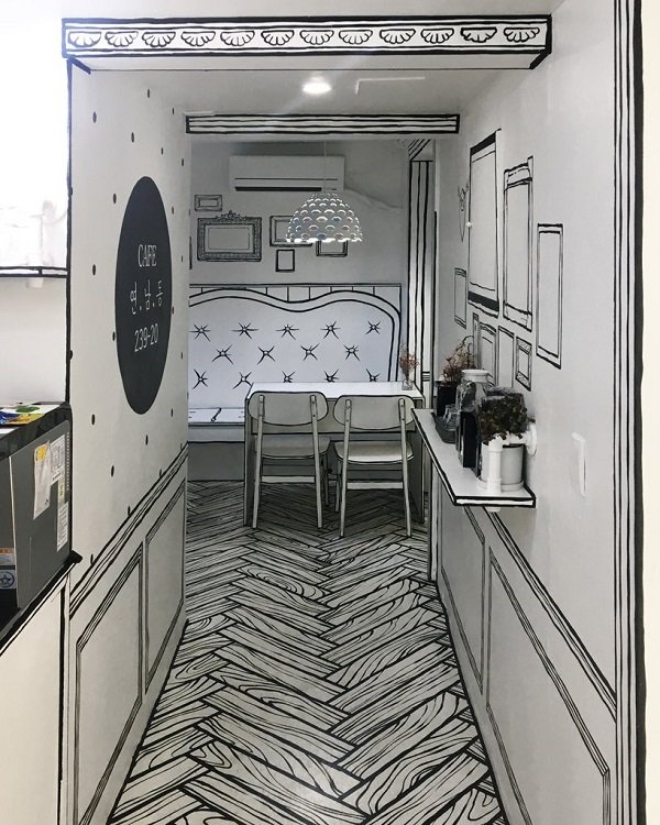 The Cafe Yeonnam-dong 239-20 in South Korea makes you feel like you have been transported into a different world the moment you walk inside. Its interior decorations and furnishings have been rendered into 2D. It makes you feel like you have stepped into a comic book illustration.
