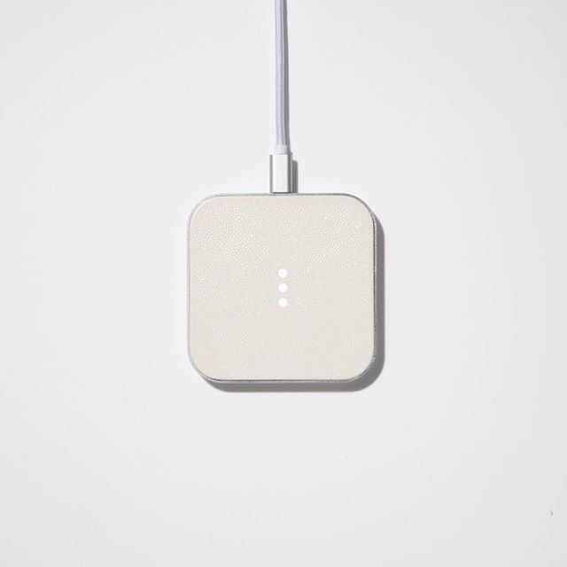 This single-device charger is designed to last for many uses. It’s made from high-grade matte aluminum alloy and genuine pebble-grain Italian leather. It also uses durable braided nylon cable.