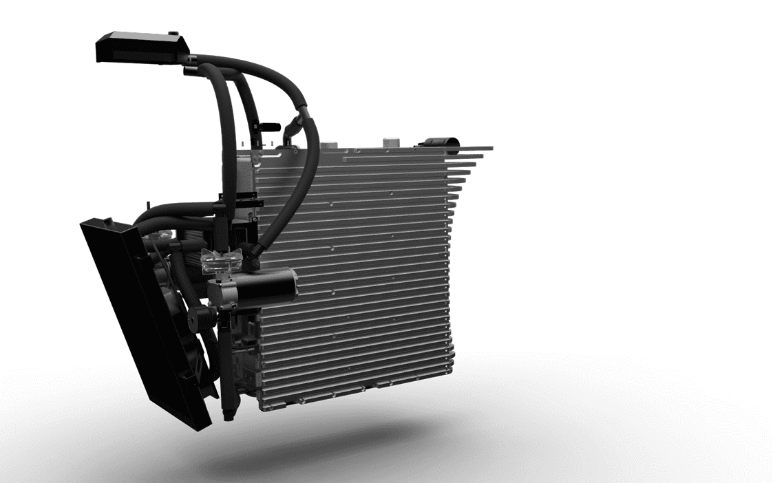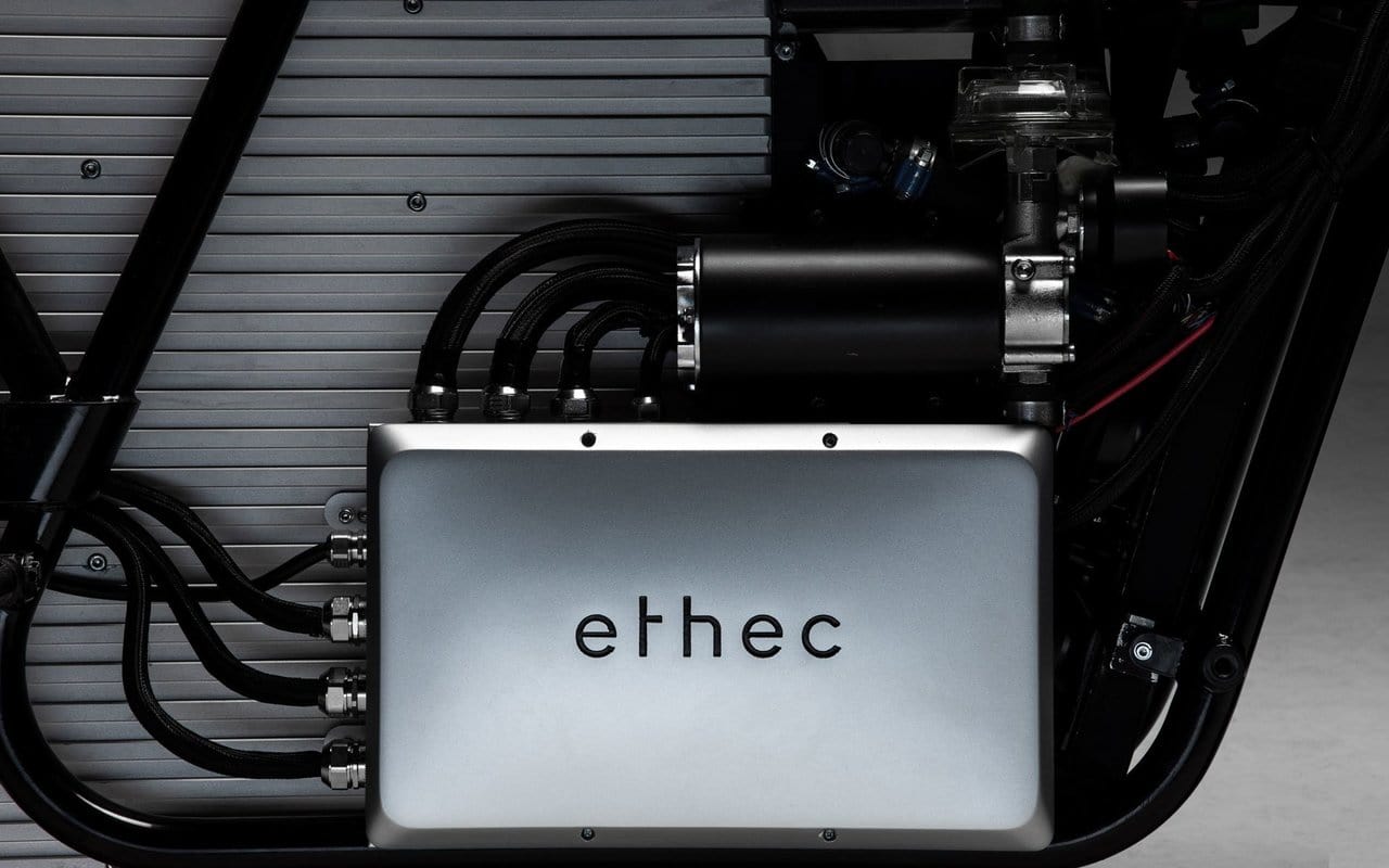 According to Ethec, its trump card lies on the battery technology used by its machine. A massive power source occupies most of the chassis and is made up of 1260 Lithium-ion cells surrounded by a direct-cooling stream of oil. Temperature management is handled by a complex assembly of fans, pumps, an expansion tank, and thermoelectric elements. Additionally, cooling fins built around the module enhances the heat dissipation. Everything is then controlled by a proprietary battery management system.