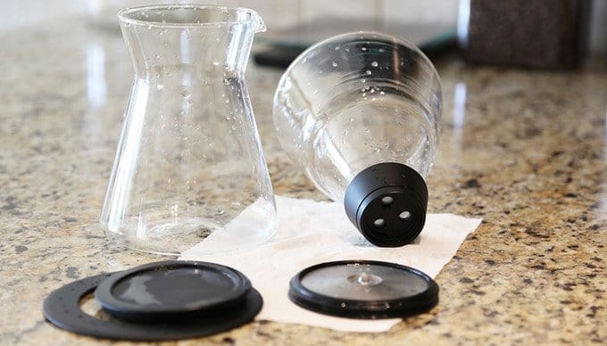 The Gravity Cold Brew Coffee Maker comes with parts (drip plate, carafe, nesting lids, and filter cap) that are easy to take apart for cleaning. The glass is dishwasher safe.