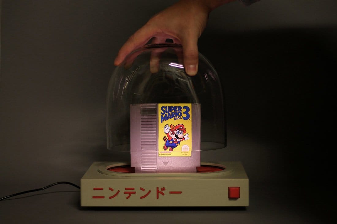 The design of the Love Hulten PYUA is certainly a throwback to the good old days. The package includes the console with two slots to accommodate both NES and Famicom cartridges. It comes with a glass dome that turns the device into a display case. The old-school experience is completed by a pair of 8bitdo wireless NES controllers. It even includes a wooden storage case that holds up to 20 cartridges. It looks like the perfect time to dust off our collection in storage.