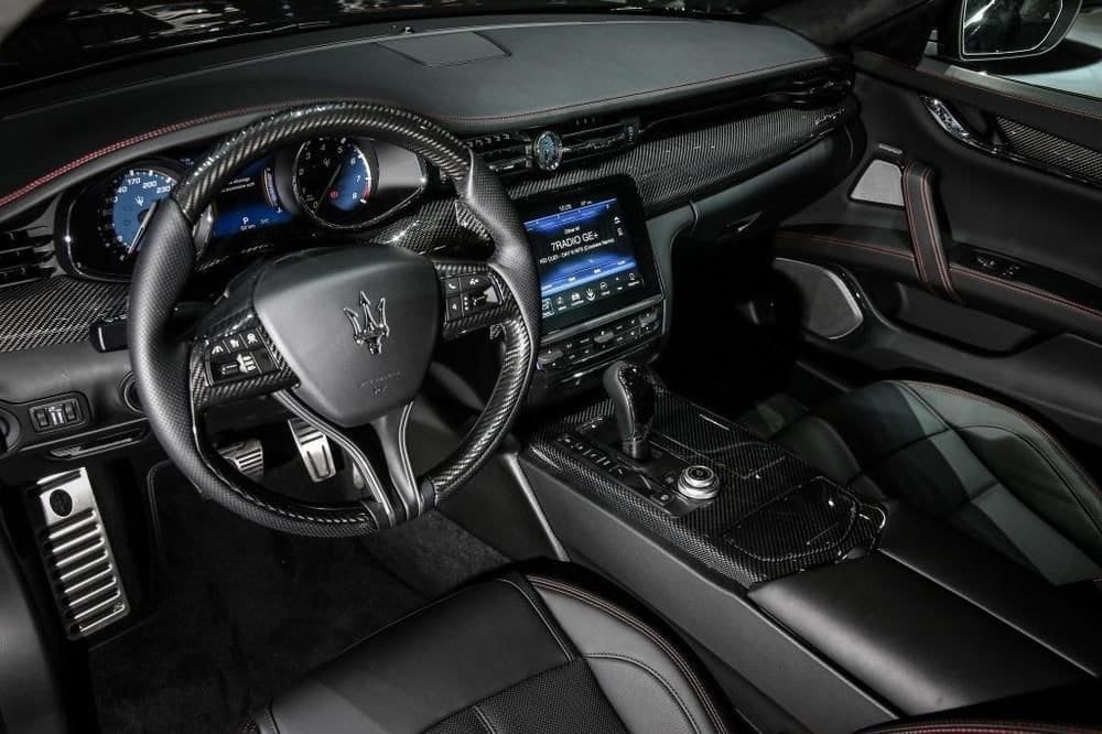 This luxury sports sedan is dressed to the nines—since Maserati wants to turn heads with the Quattroporte GTS Nerissimo. Furthermore, the interior is bedecked with plenty of carbon fiber and lavish hand-stitched leather upholstery. The craftsmanship and quality of this four-door transport even show on the companion accessories that come with the package.