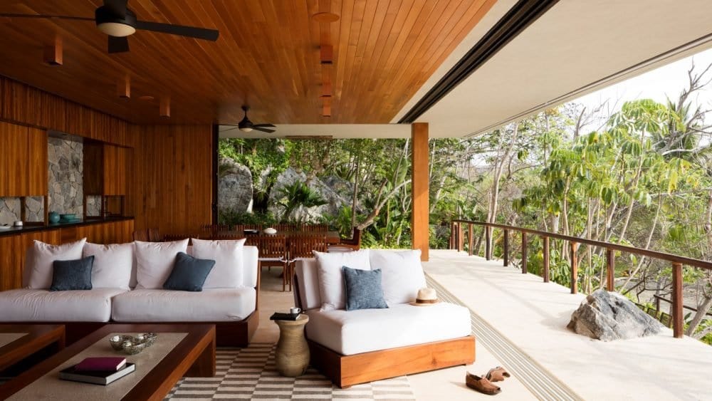 One of its newest masterpieces, the SJA III Cabana, is another example of just how exemplary Casas de México is in terms of integrating different spaces together to make an architecture based on harmony, not opposition. As such, the SJA III is a beachfront cabana that invites the outside in. It’s smack dab in the slope of a rugged hillside that overflows with vegetation. You essentially have a front-row seat to watch incredible views of the Pacific Ocean’s rippling waters.