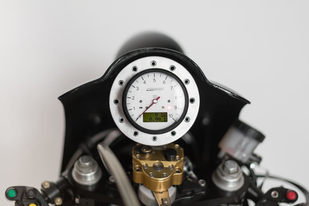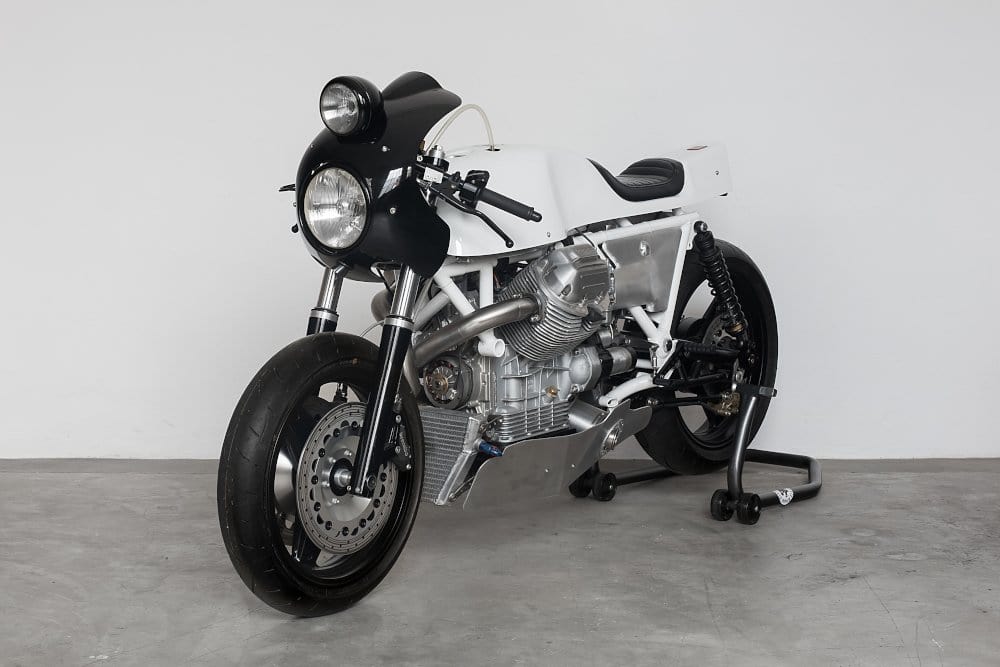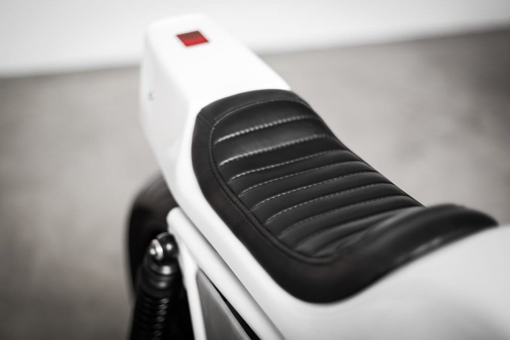 Story time: Ruote Fiere found the bike in Northern Italy. He took it home and promptly rescued it following a failed attempt at restoration in the ‘90s. The work involved extensive tinkering, but the bike thankfully made it out alive. That’s to the merit of shop owner Davide Caforio. He gave the classic bike enormous TLC. He took inspiration from another iconic vehicle, the Porsche 907, with its clean bodywork in addition to its stark black and white paint job.