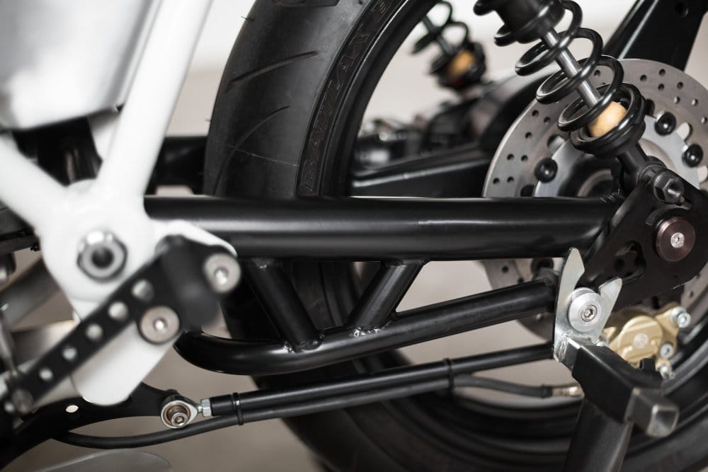 As for power, the bike boasts 90 horsepower with 9000 rpm. It has a 90-degree V-cylinder four-stroke engine with two valves per cylinder. It’s air- or oil-cooled via an aluminum racing radiator with aeronautic braid ducts and ergal fittings. You also get increased cup with external oil passage, plus a special camshaft. You’ll never guess it’s this sophisticated and complex at first glance, but masterly craftsmanship doesn’t beg to be noticed; it simply works under the hood, and you’ll be confident it won’t ever fail you.