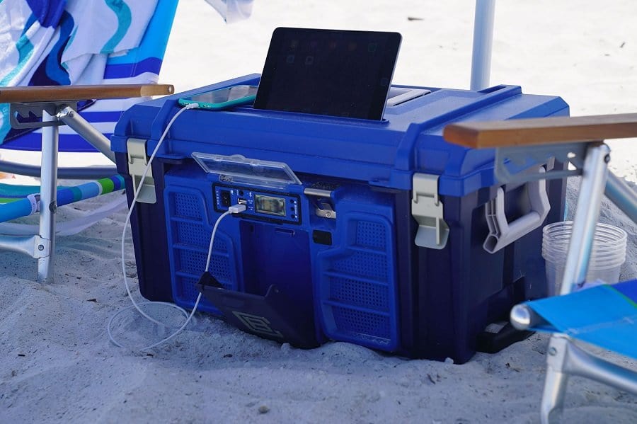 This bin not only keeps your food and drinks cold but also keeps you entertained. It’s Bluetooth-ready and has built-in marine-grade speakers for you to play music. It also has an LED clock display, two USB ports, and an auxiliary port. It runs on a rechargeable lithium-ion battery and provides up to 4 hours of audio playback.