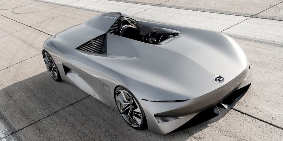 Infiniti supposedly has plans to develop a new lineup of electric cars. To demonstrate how far along they are with the technology, the manufacturer showcases the Prototype 10 as a proof of concept. This open-top futuristic model seats only one and sports an aggressive aerodynamic frame.