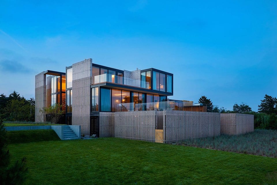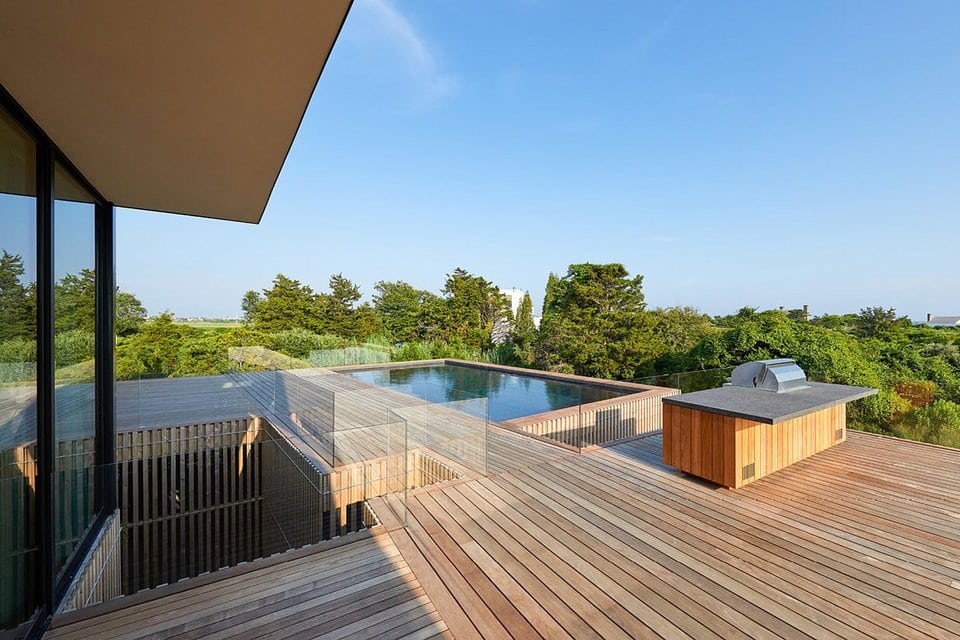 The Seascape Lane is nestled on an acre of land at the end of a private cul-de-sac in the village of Sagaponack, Hamptons. It features stylish architecture that provides a panoramic view of the Atlantic Ocean, the Sagg Pond, and the Sagaponack farmland.