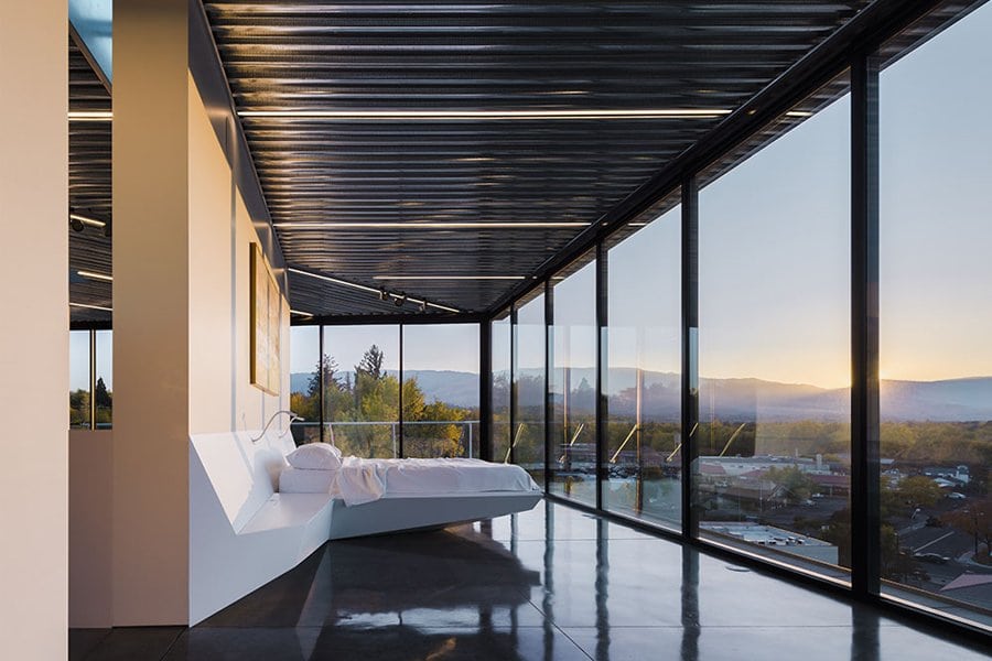 The house sits on a high cliff that gives a scenic view of Reno and the Sierra Nevada Mountains. It is home to two art collectors and dealers that fancy art of the American West and contemporary art. Thus, it is only fitting that their house speaks of their profession.