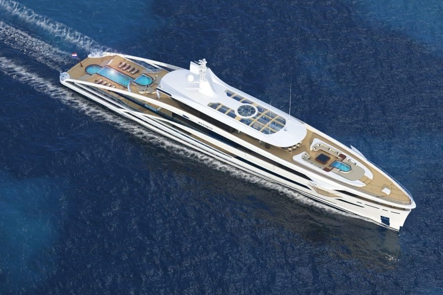 Look at those sharply defined edges. Look at that ascending curve. Everything about Heesen’s latest concept superyacht, called the Maximus, will make you gush with excitement. Its peculiar design makes it look somewhat like a plane. Because of which, there’s nothing more striking than seeing it float on water.