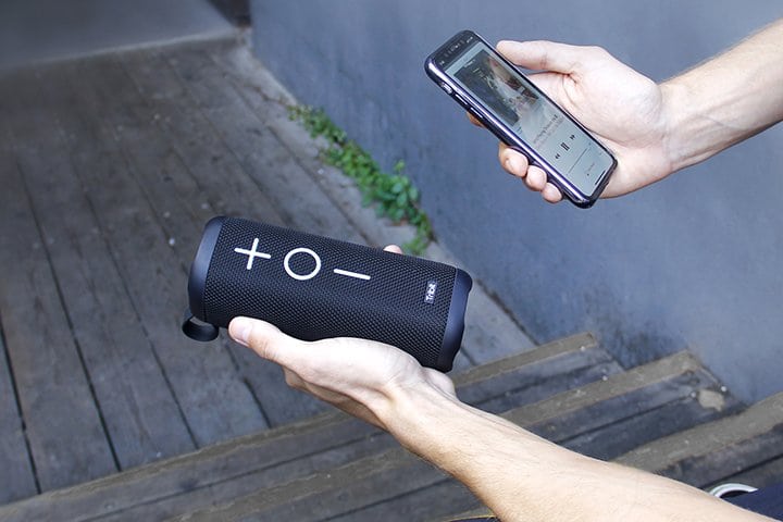 The XBoom Speaker is lightweight at only 19.2 ounces and portable to carry around using its built-in silicon strap. It is a handheld device that doesn’t take up much space in your bag.