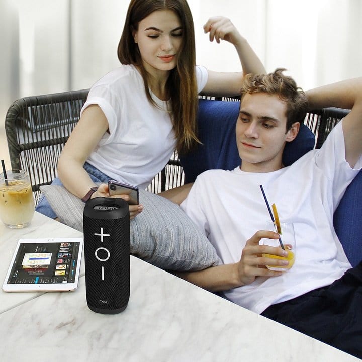 For an amplified sound, the Tribit XBoom speaker’s Wireless Party Chain feature allows for dual connections at the same time. You can wirelessly connect two speakers together and get the most out of the 360°sound offering. Its advanced 4.2 Bluetooth technology allows for instant connection every time even at a distance of more than 66ft range. It is compatible with any Bluetooth device, including smartphones, tables, and Echo products. You can control the speaker with voice commands using Alexa.