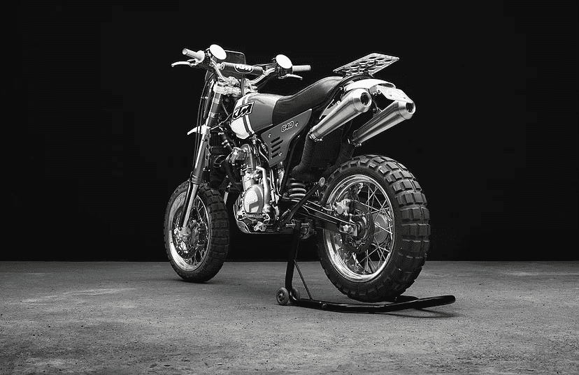 Szews didn’t mess with the power too much, but did replace the exhaust system. The LC4 Supermoto now boasts KTM Duke 2 headers, paired neatly with a set of Spark mufflers. Some elements he left alone, like the adjustable suspension, running gear, and brakes.