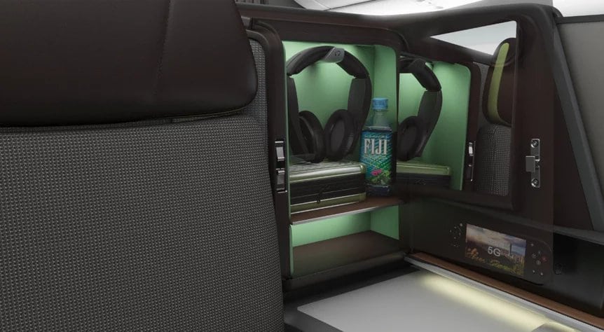 The Designworks team presents a vision of premium travel never before seen on any of EVA’s commercial planes. Trying to describe it would do the seats a great disservice. As such, let’s just say they’re more like lounges than conventional plane seats. They come in natural leather and rich custom textiles that’ll make you feel right at home even though you’re tens of thousands of feet up in the air.